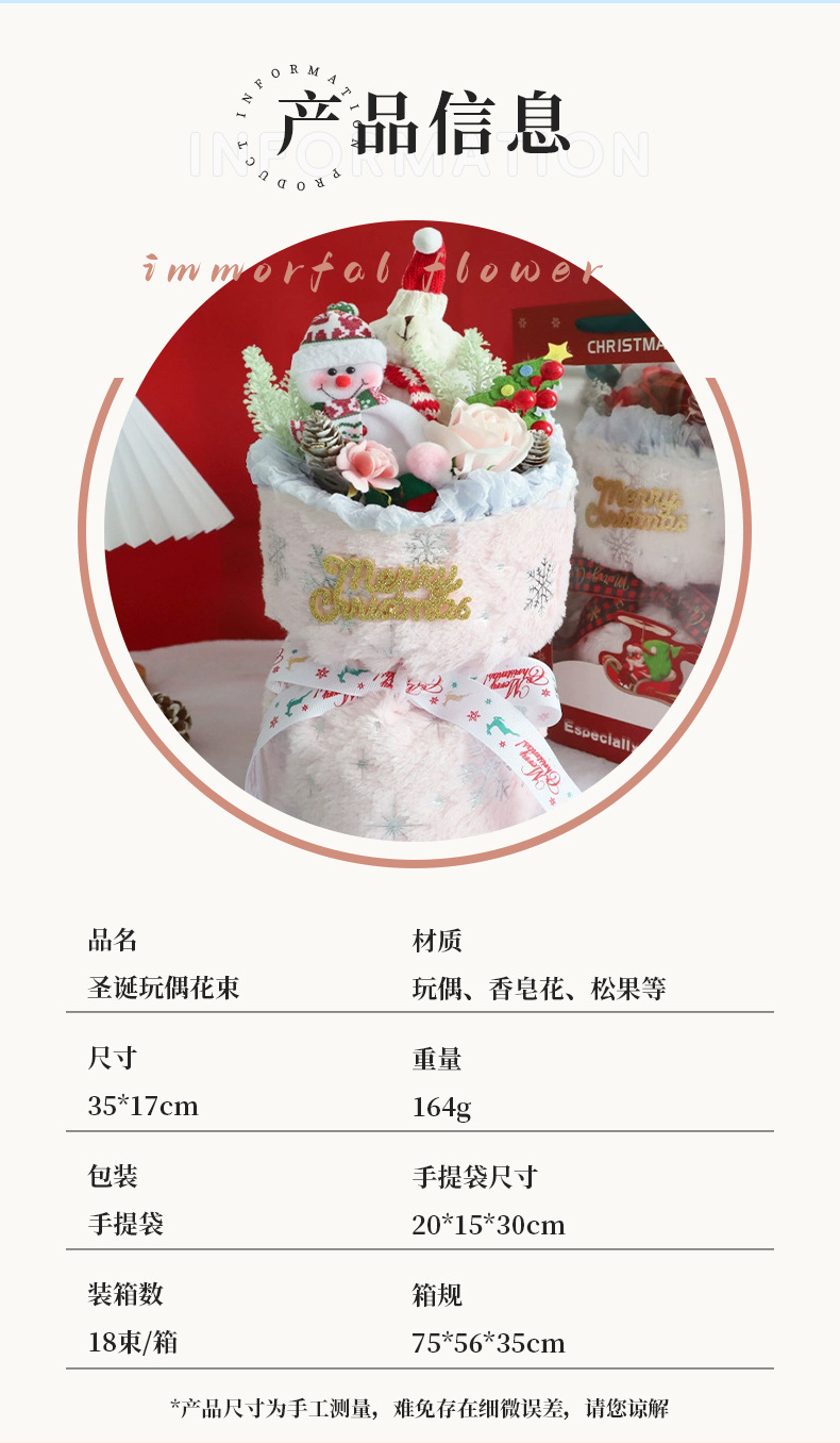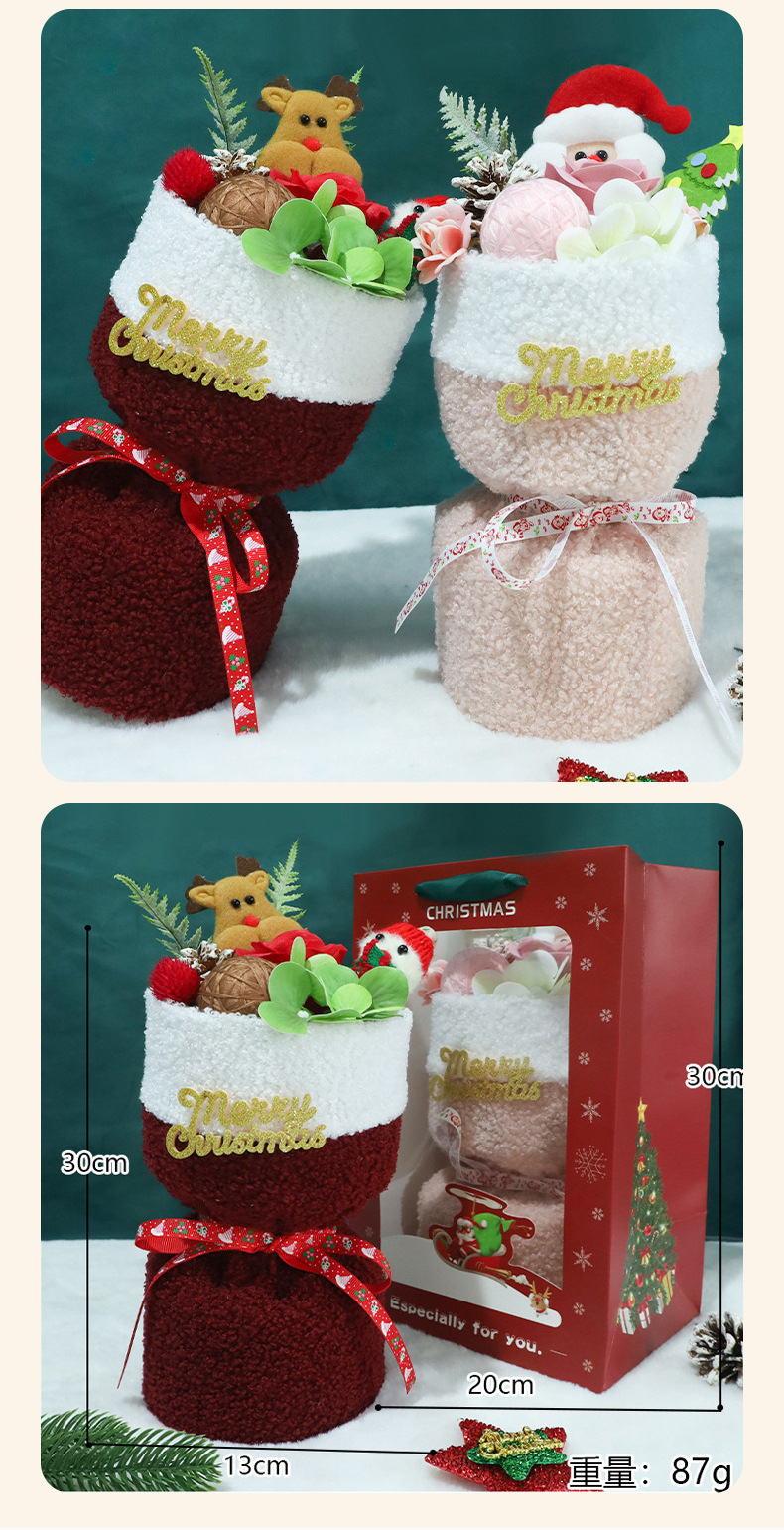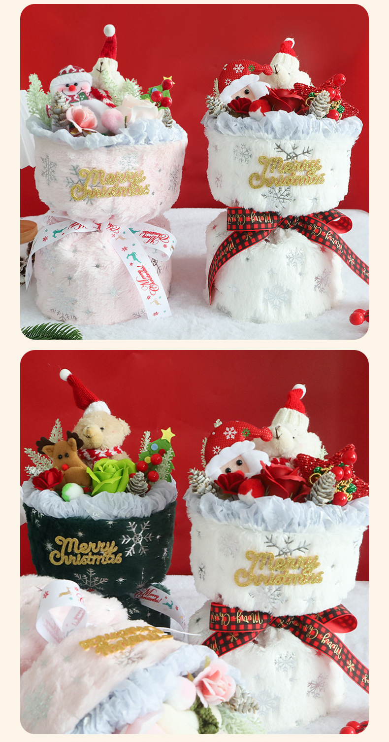 【立体可爱玩偶❗️圣诞氛围满满】玩偶圣诞花束干花高级感平安夜伴手礼送女友礼物卡通花束。ja