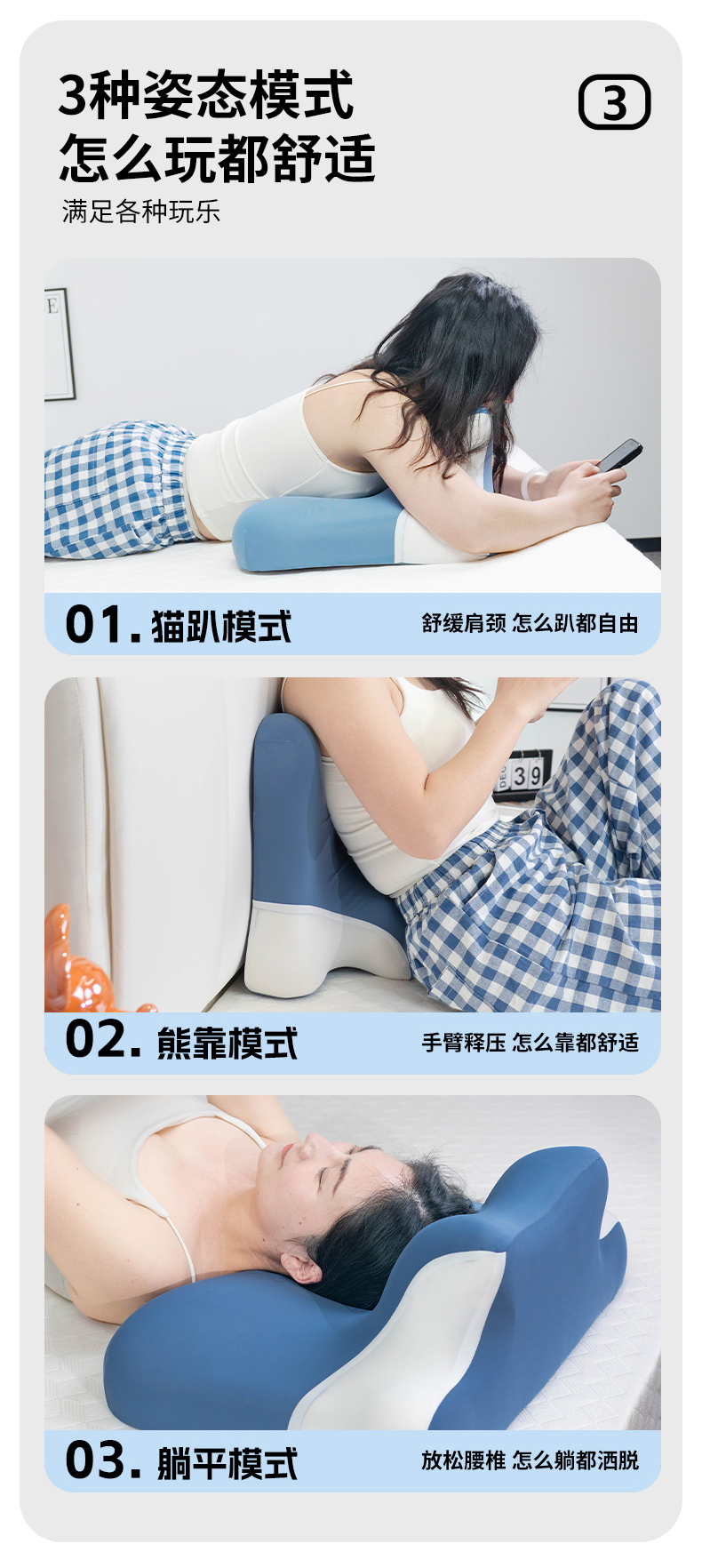 多功能记忆棉趴趴枕 4色可选 一枕多用 床上多功能枕 俯卧位趴枕 睡觉看书枕 手机神器