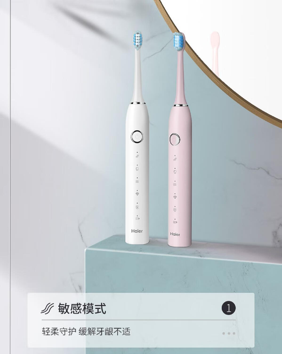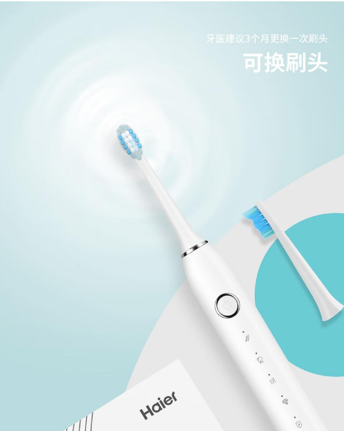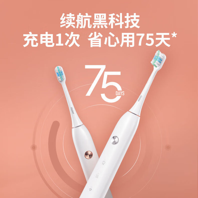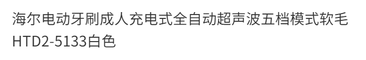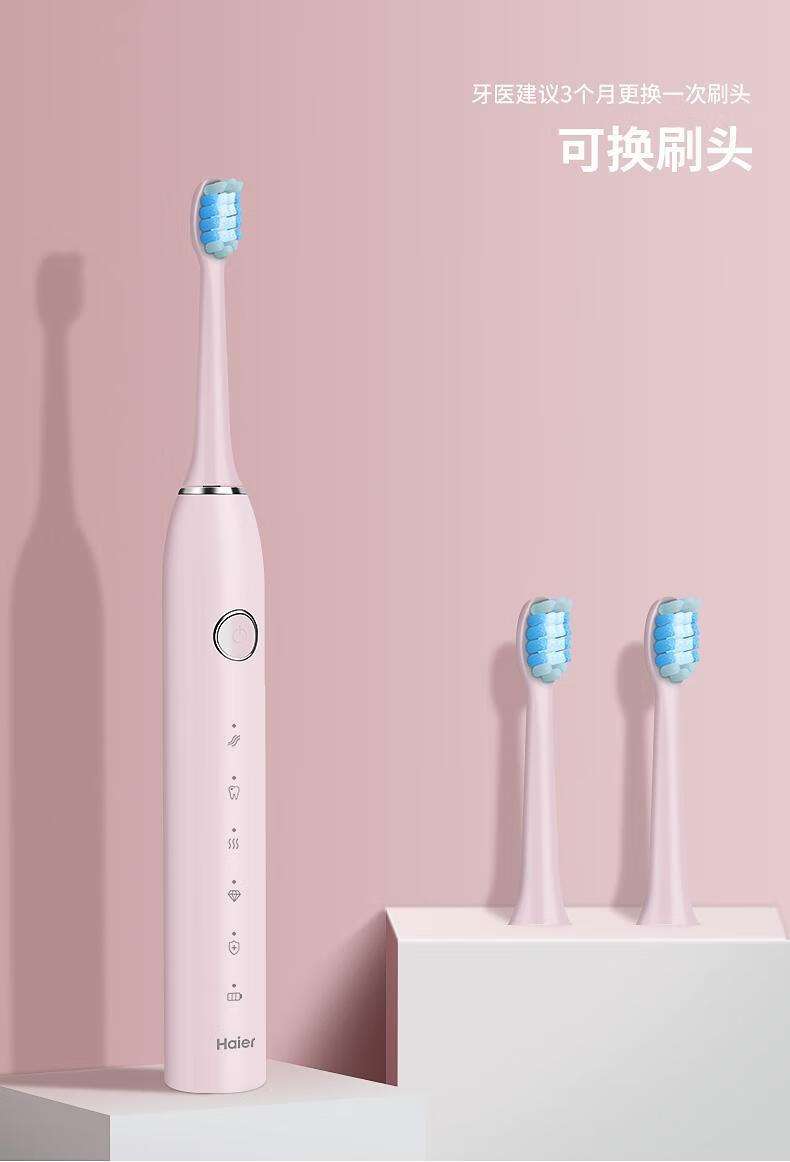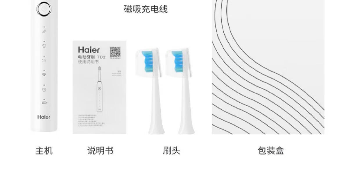海尔电动牙刷成人充电式全自动超声波五档模式软毛 白色HTD2-5133