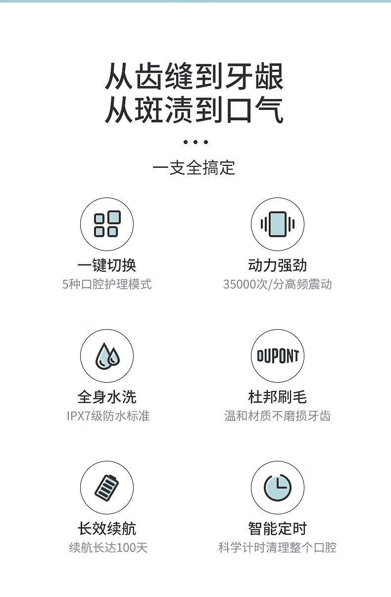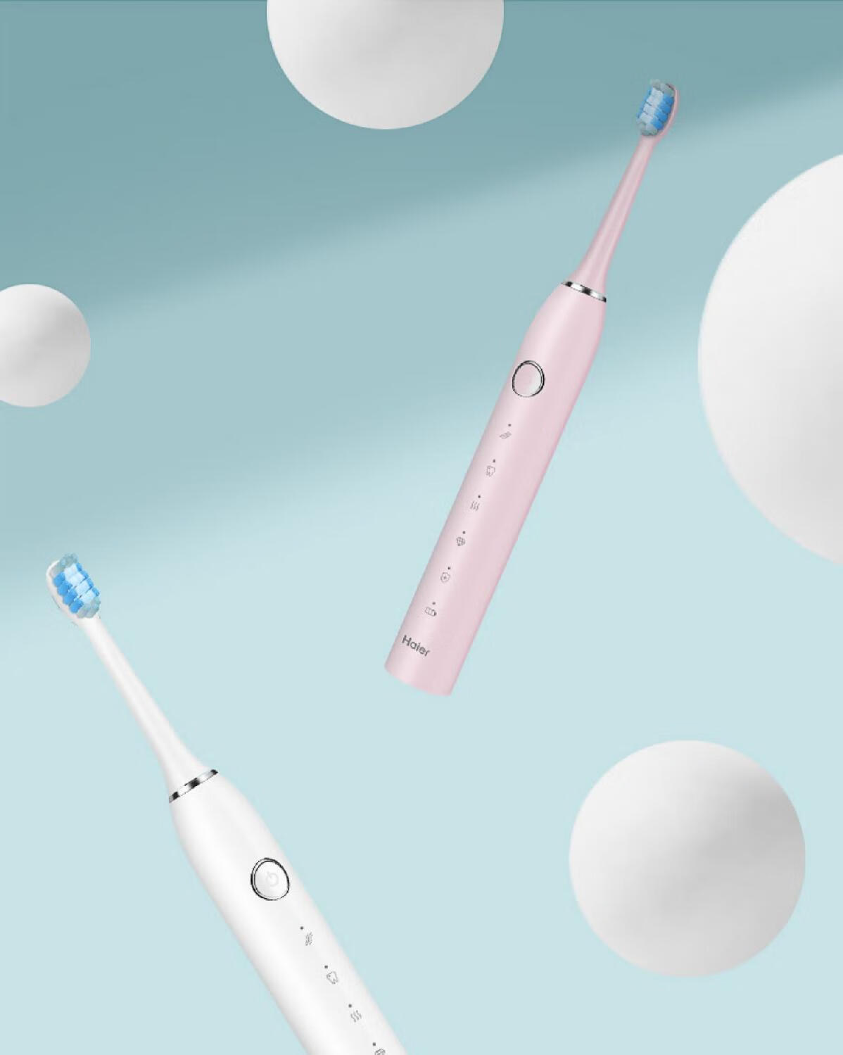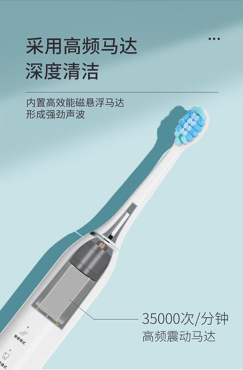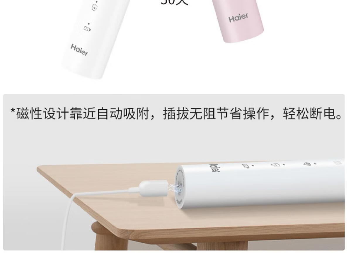海尔电动牙刷成人充电式全自动超声波五档模式软毛 白色HTD2-5133