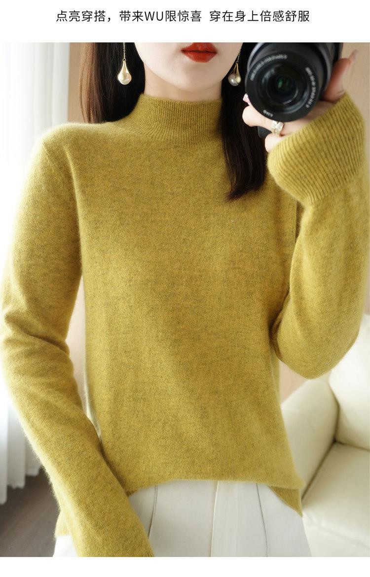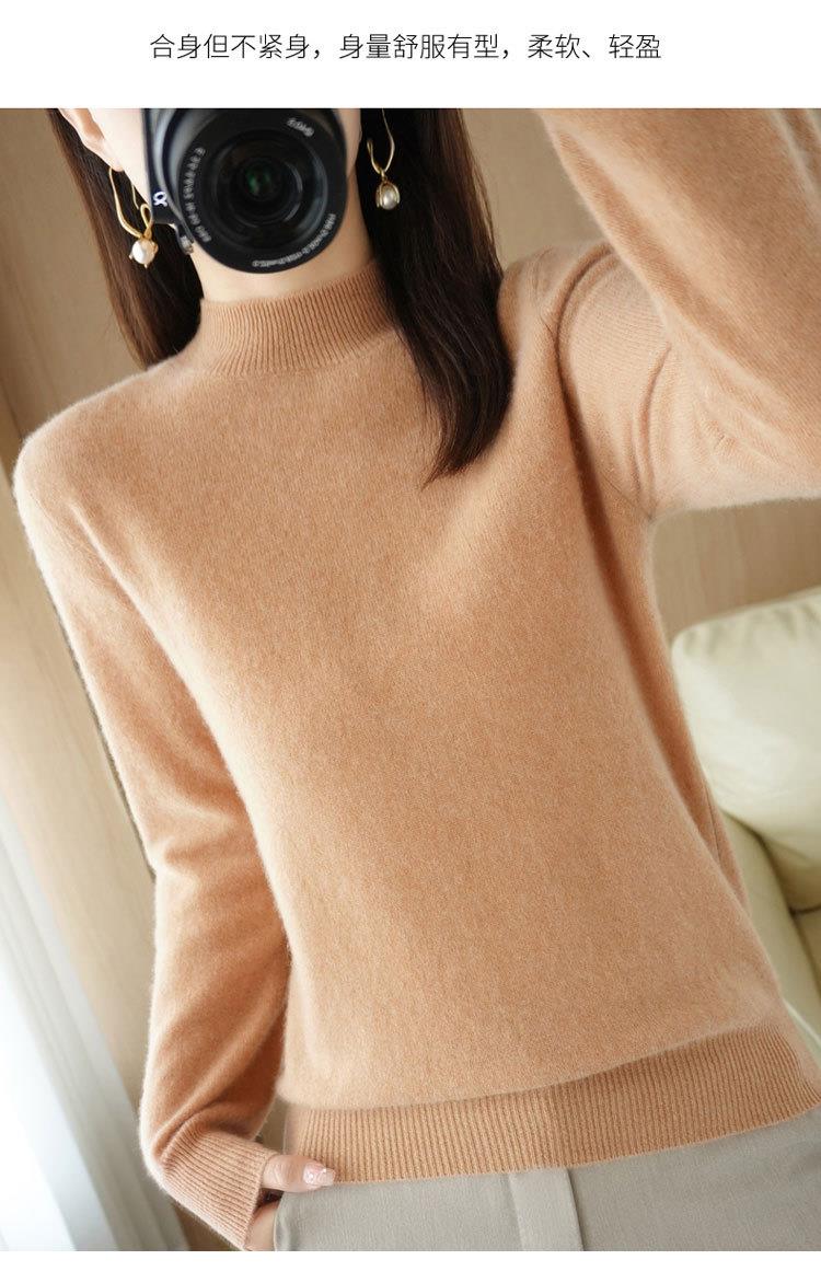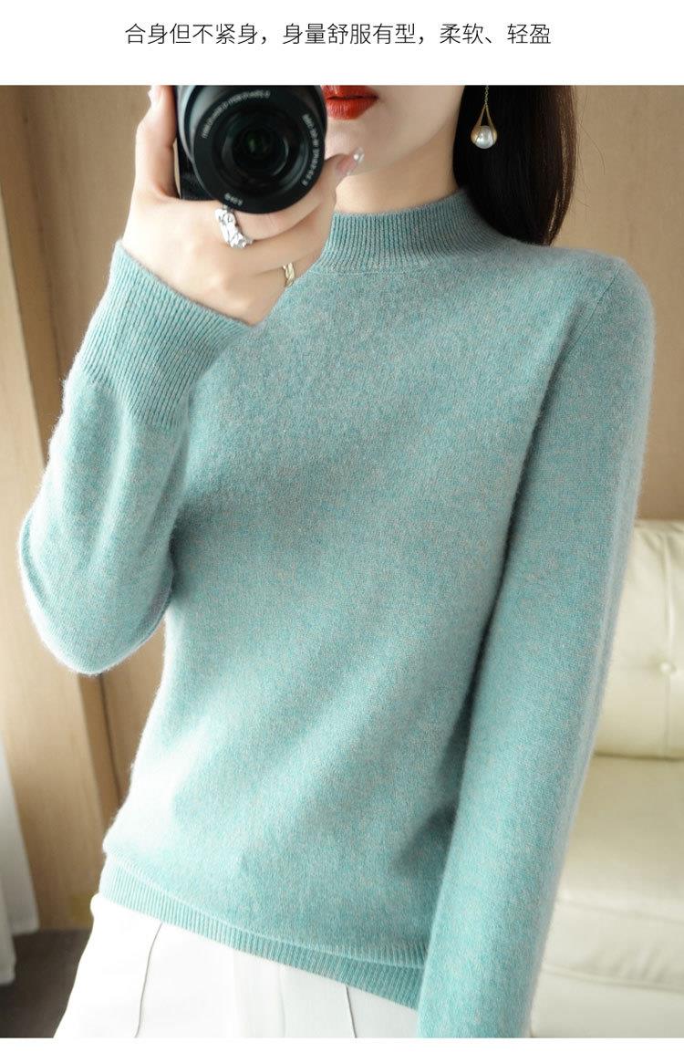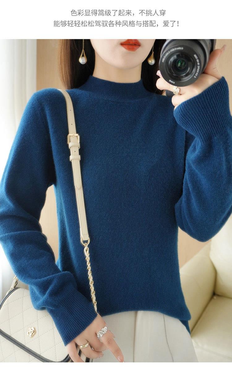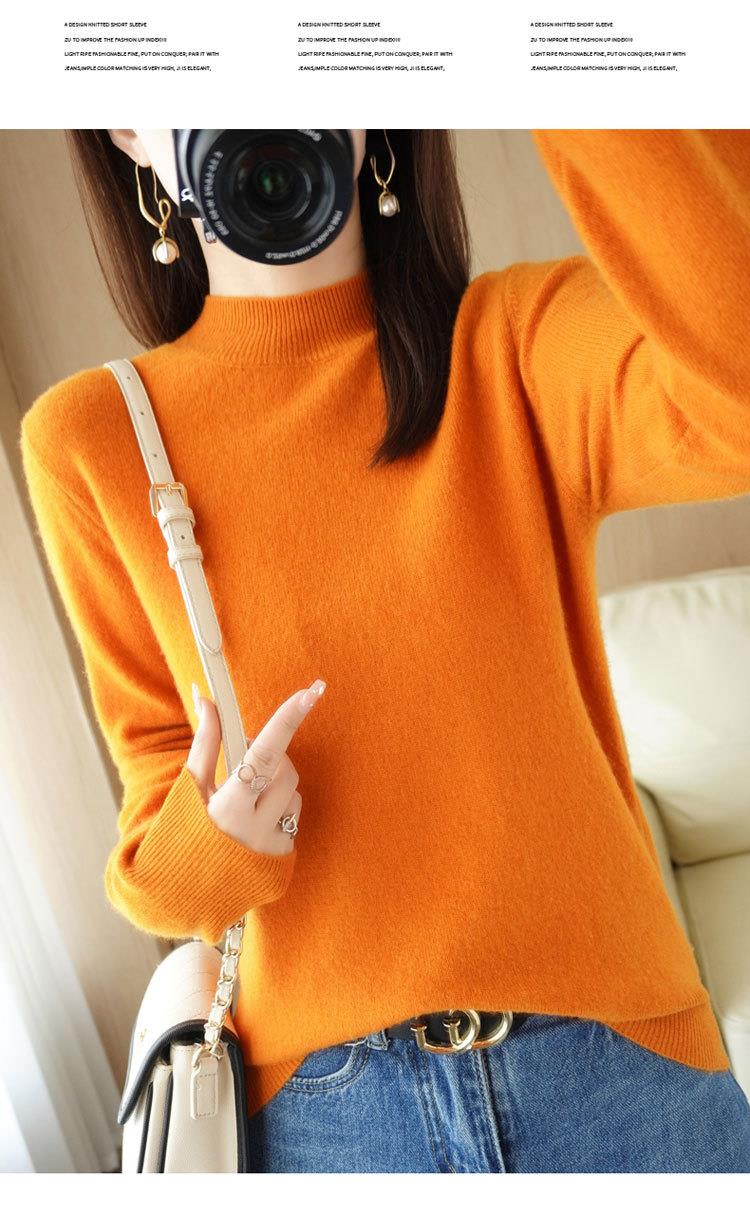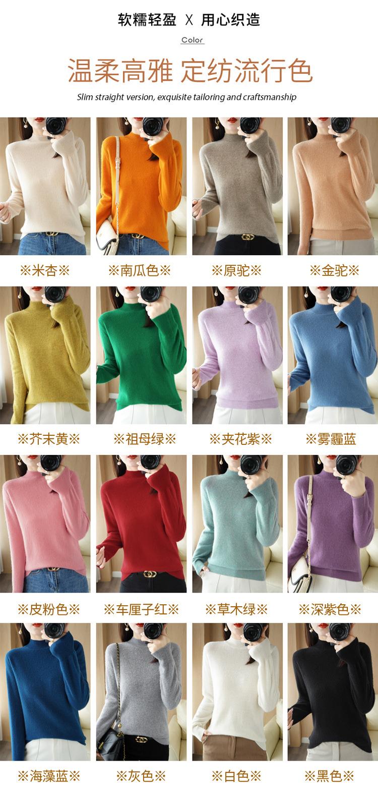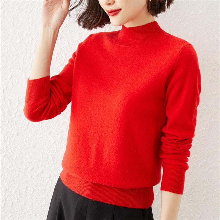 2023秋冬新款半高领毛衣女短款套头针织打底衫纯色长袖女装上衣