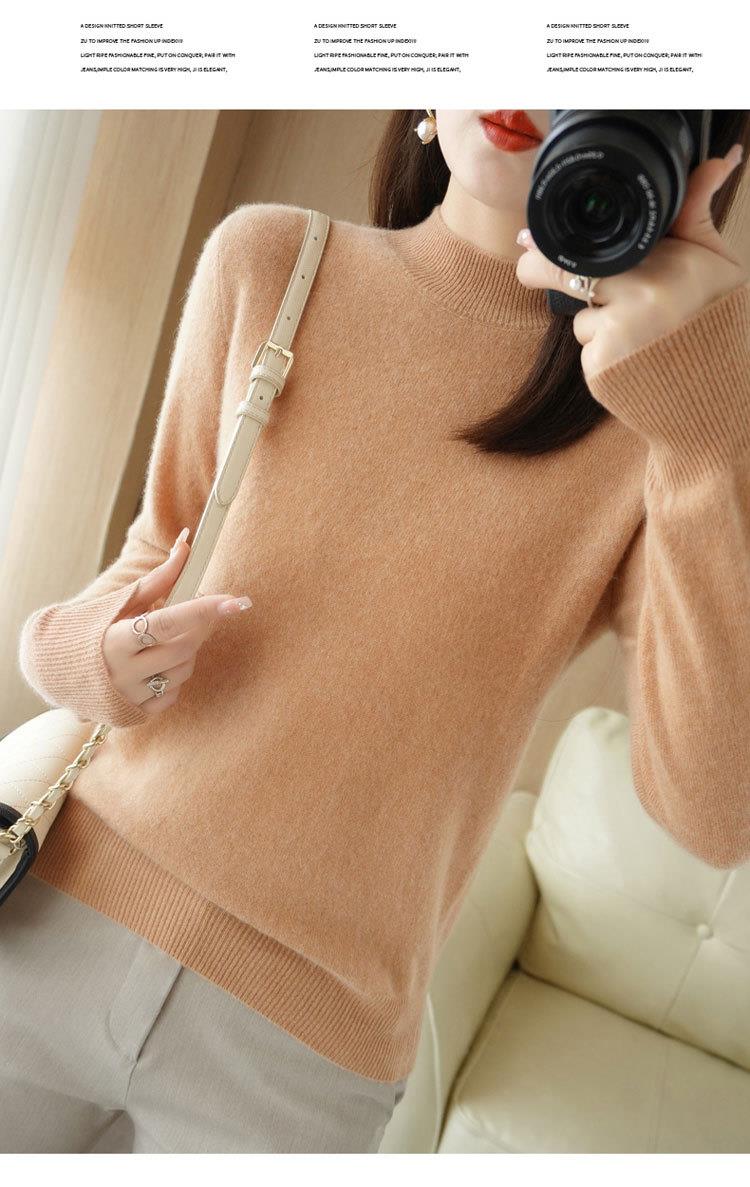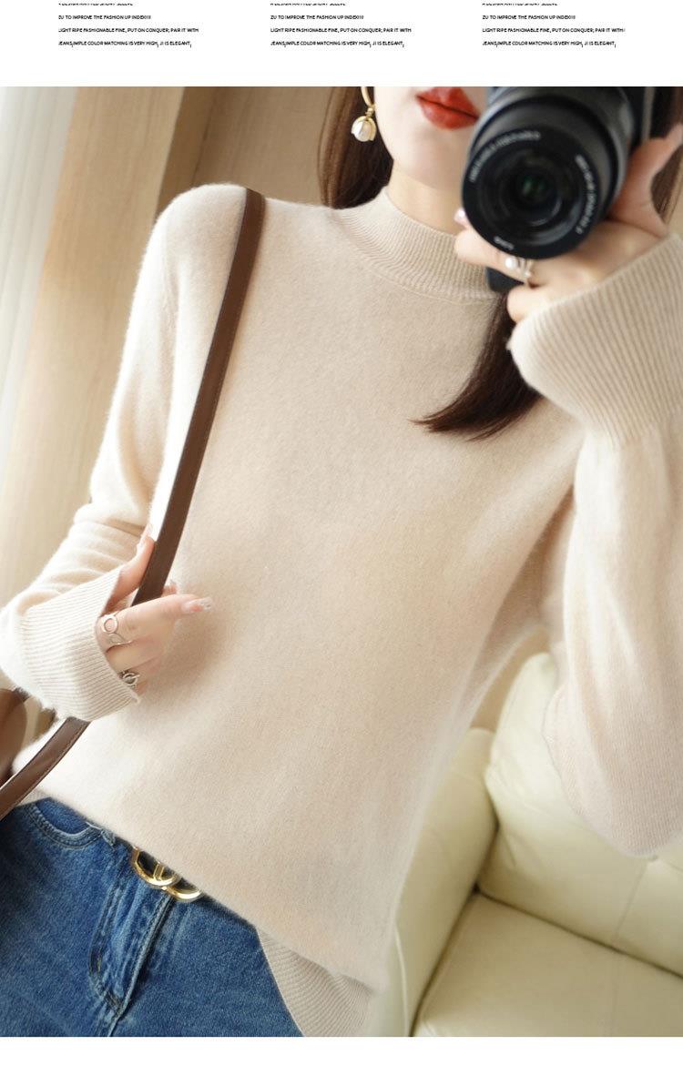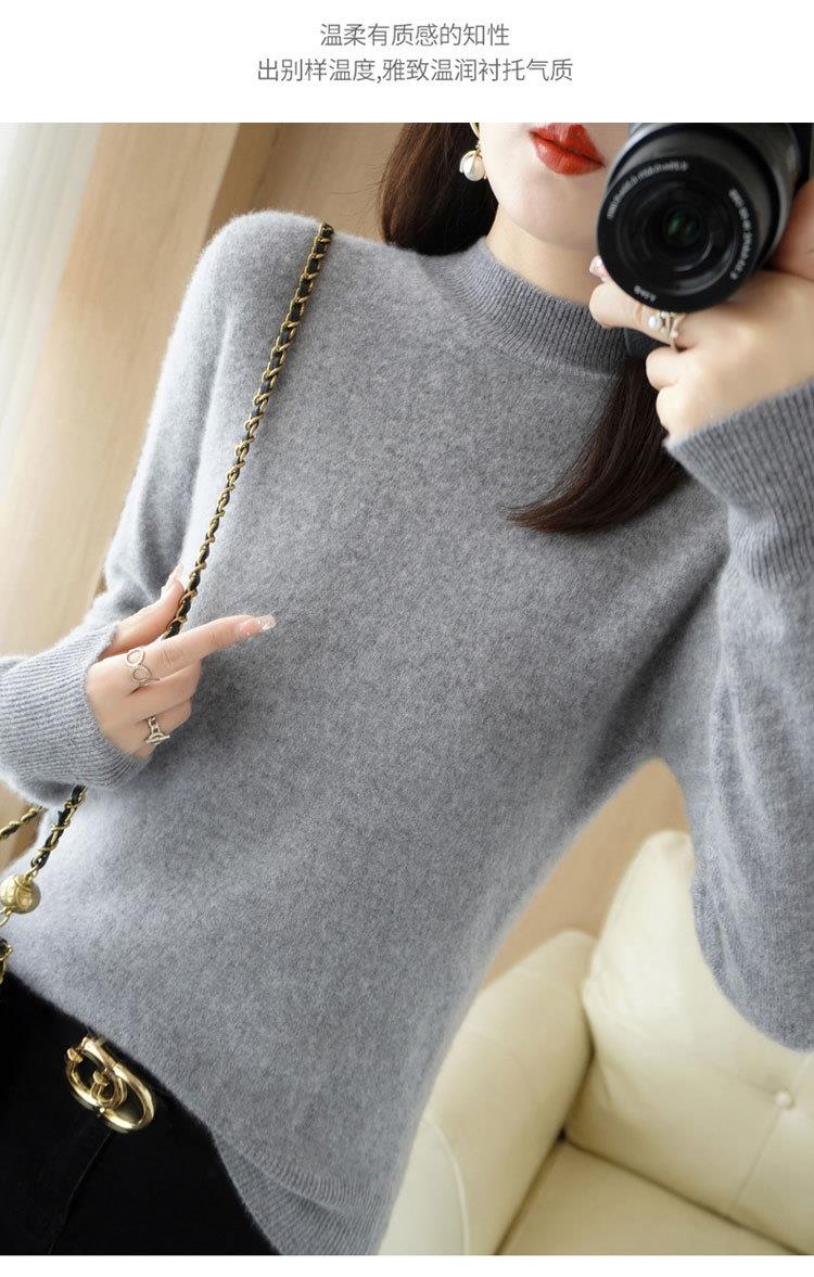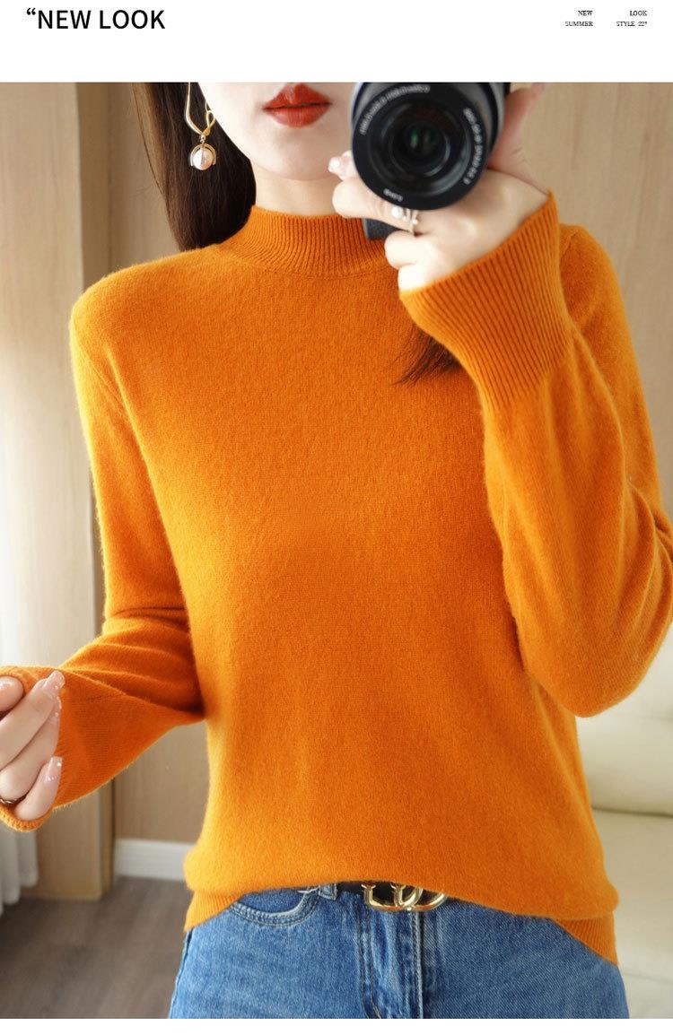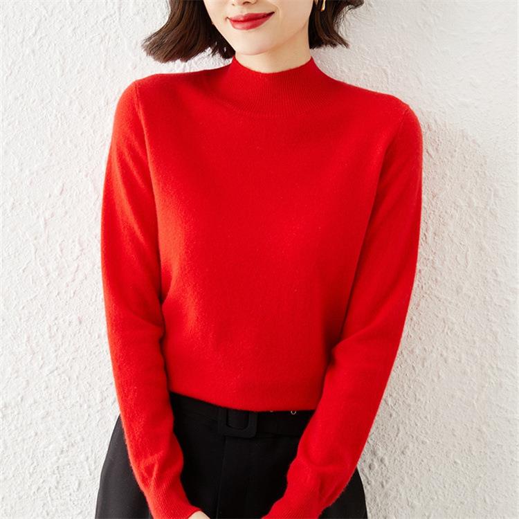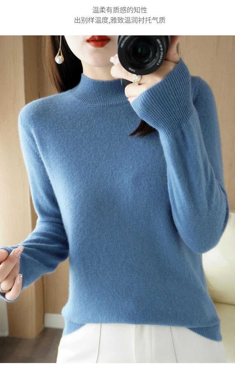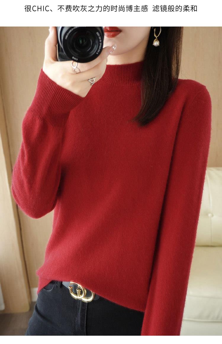 2023秋冬新款半高领毛衣女短款套头针织打底衫纯色长袖女装上衣