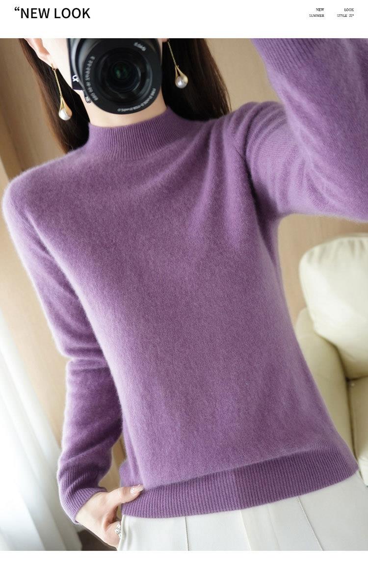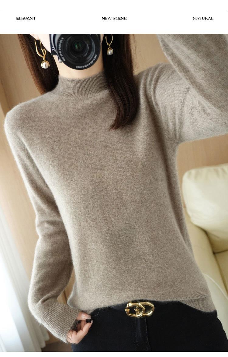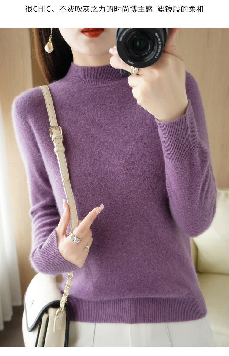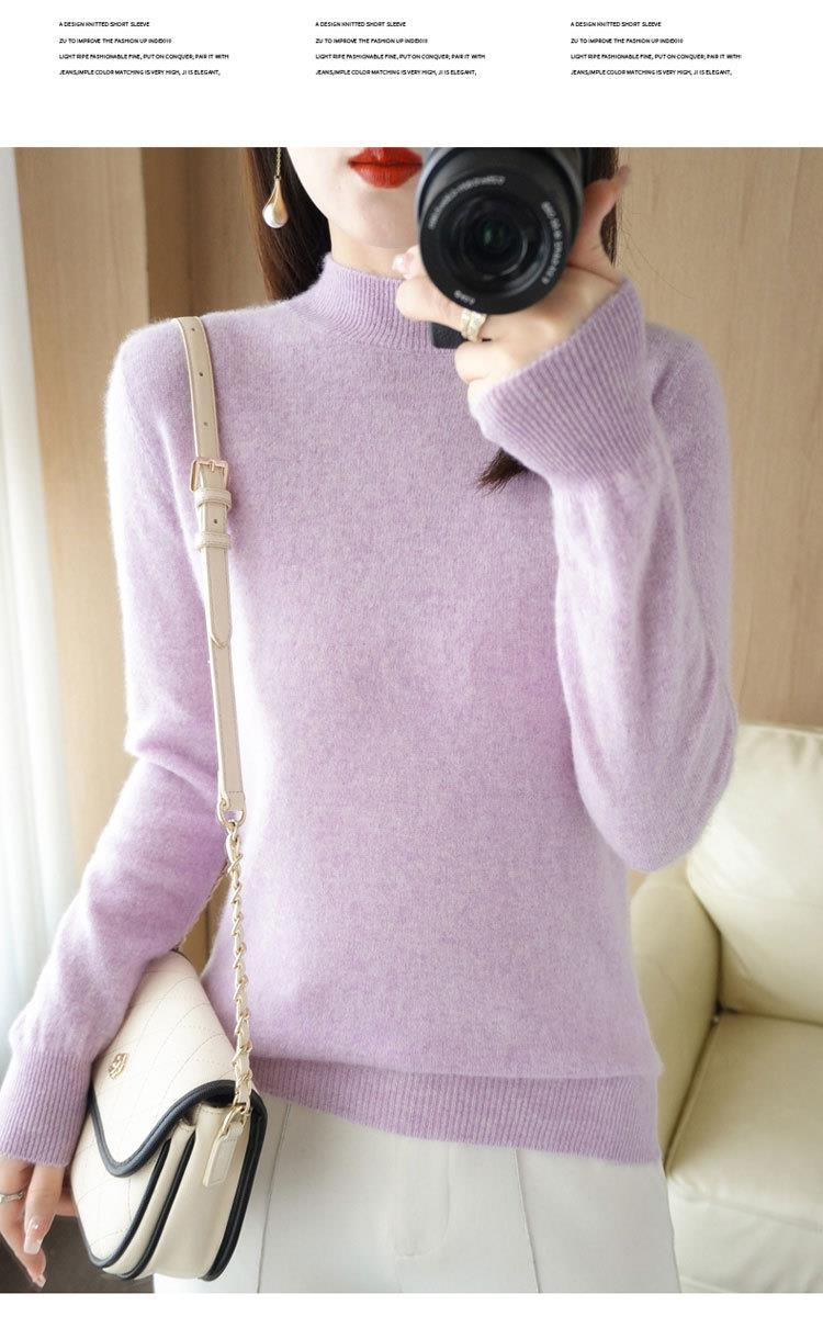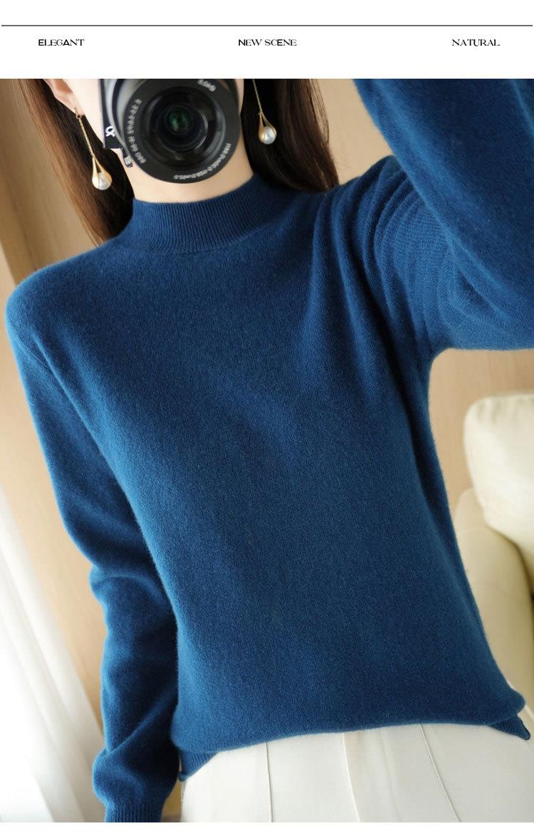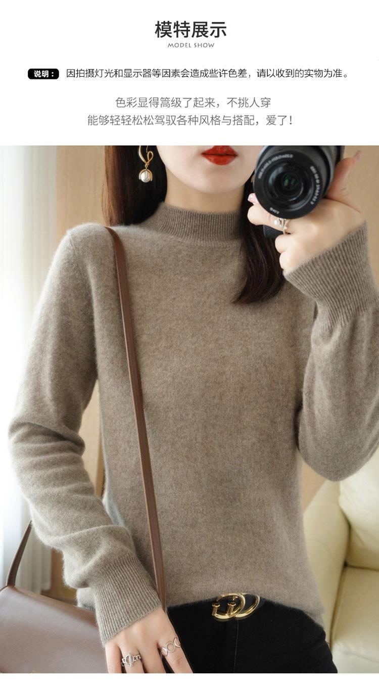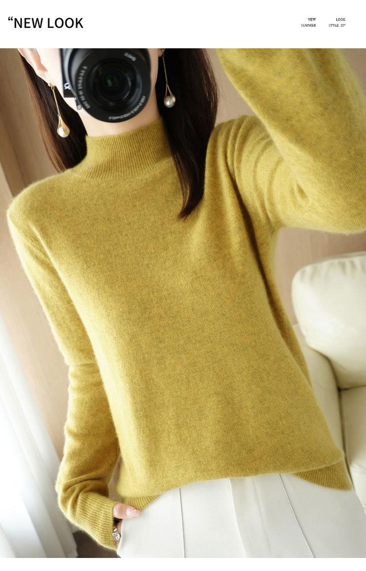 2023秋冬新款半高领毛衣女短款套头针织打底衫纯色长袖女装上衣