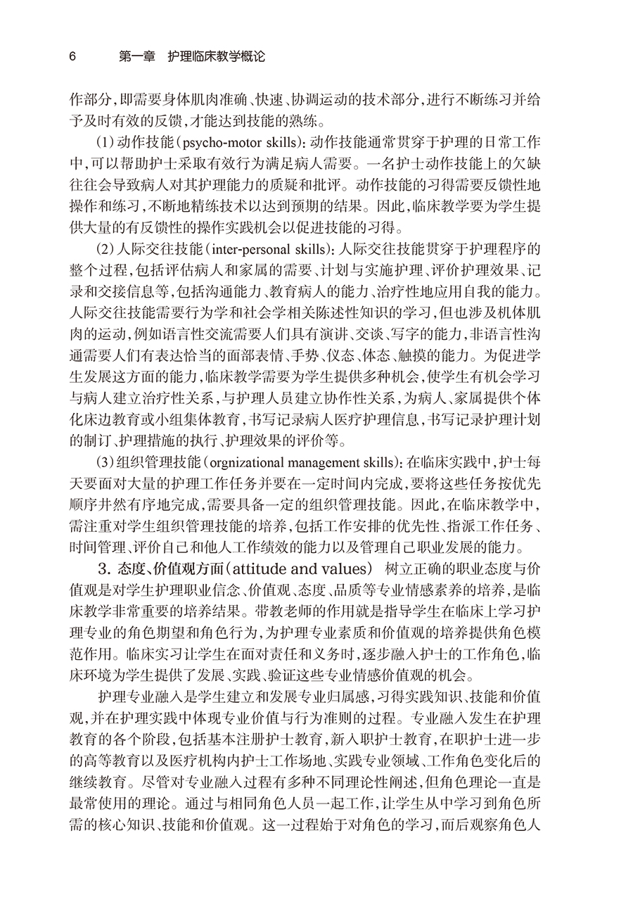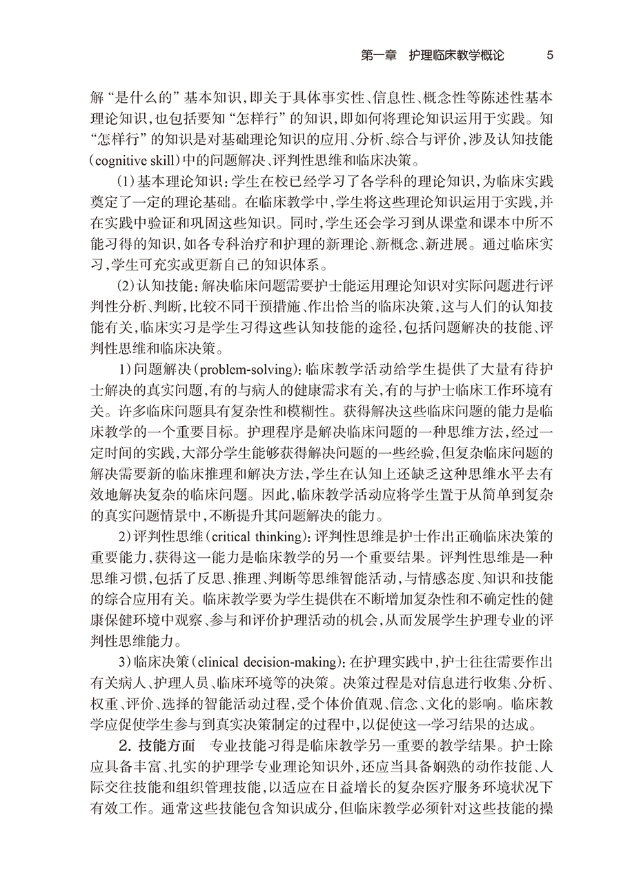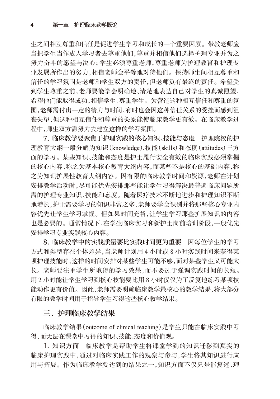 第一章护理临床教学概论/1 第一节护理临床教学指导思想与教学结果/1 一、护理临床教学概念/1 二、护理临床教学指导思想/2 三、护理临床教学结果/4 第二节护理临床教学程序/7 一、护理临床教学中的“教”与“学”/7 二、护理临床教学程序/8 第三节护理临床教学模式和临床带教老师的素质要求/12 一、护理临床教学模式/12 二、护理临床带教老师的素质要求/15 第二章护理临床教学目标/19 第一节护理教学目标体系/19 一、教学目的/19 二、培养目标/19 三、课程目标/20 四、教学目标/20 五、教学结果与教学目标/21 第二节教学目标/23 一、教学目标的分类与目标层次/23 二、教学目标的组成/34 三、教学终目标与助目标/36 四、临床教学目标书写/38 第三章护理临床教学计划/77 第一节以教学结果为导向的临床实习计划/77 一、护理院校临床实习大纲/77 二、教学医院临床实习大纲/77 第二节护理临床实习前的准备/79 一、确立临床实习组织管理和实习生守则/79 二、实施临床带教老师培训项目/80 三、制订实习生轮转计划/85 四、制订实习手册/86 五、实施实习生岗前教育/86 六、轮转实习科室制订周目标/88 第四章护理临床教学方法/100 第一节临床带教法/100 一、概况/100 二、预期教学结果/100 三、临床带教中成人教学指导思想/101 四、实施要点/112 第二节授课为基础的教学法/116 一、概况/116 二、预期教学结果/116 三、实施要点/116 第三节讨论法/124 一、概况/124 二、预期教学结果/125 三、实施要点/126 四、实施形式/130 第四节案例教学法/132 一、概况/132 二、预期教学结果/132 三、实施要点/133 四、实施形式/137 第五节护理查房法/140 一、概况/140 二、预期教学结果/141 三、实施要点/141 四、实施形式/141 第六节书面作业法/151 一、概况/151 二、预期教学结果/152 三、实施要点/152 四、实施形式/152 第七节自主导向学习教学法/170 一、概况/170 二、预期教学结果/170 三、实施要点/170 四、实施形式/171 第八节模拟教学法/174 一、概况/174 二、预期教学结果/176 三、实施要点/176 第五章护理临床教学评价/184 第一节临床评价概述/184 一、临床评价定义/184 二、临床评价相关其他概念/184 三、临床评价的公平性/185 四、反馈在临床评价中的重要性/186 第二节临床评价方法/187 一、观察评价/188 二、考试评价/192 三、整体综合能力考核评价/199 四、模拟考核评价/209 五、客观结构化临床考试评价/209 六、书面作业评价/209 七、档案卷宗评价/210 八、临床讨论会评价/210 九、自我评价/210 第六章护理临床教学实践指导/211 第一节护理始置于“心”/211 一、认识病人的脆弱与敏感/212 二、在护理点滴中践行“仁爱关怀之‘心’”/213 第二节将课堂知识迁移到临床实践/217 一、“6问法”思维框架/218 二、搭建“病人”与搭建“护士”课堂练习/221 第三节看全画面中的病人/226 一、病人既往/227 二、病人当下/228 三、病人即将/229 第四节专业化交班与病情汇报/233 一、交班的重要性/234 二、专业化交班/234 三、病情汇报/237 第五节智慧地进行护理记录/239 一、护理记录概况/240 二、护理记录中常见的问题/241 三、常用护理记录格式/243 第六节克服“作业性焦虑”并熟练操作/248 一、克服“作业性焦虑”/248 二、熟练操作/251 第七节在特殊实习背景下,做有心的观察者/253 一、寻找学习机会/254 二、抢救病人场景/257 第八节实习后讨论会/259 一、积极分享/260 二、积极倾听/261 第九节安排好一轮科室的实习/263 一、实习前准备/264 二、实习初期/264 三、实习中期/265 四、实习末期/271 第十节来自前人的真知灼见/271 第七章临床实习大纲示例/275 第一节教学医院临床实习大纲示例(以浙江大学医学院附属 邵逸夫医院为例)/275 一、实习目标或结果/275 二、实习方案/275 第二节护理院校临床实习大纲示例(以杭州师范大学护理学院 本科生实习大纲为例)/350 一、教学目的/350 二、教学方式与要求/350 三、教学内容和安排/351 四、考核方式和评分标准/356 参考文献/357