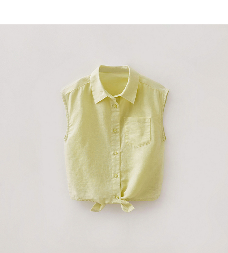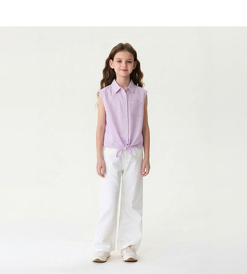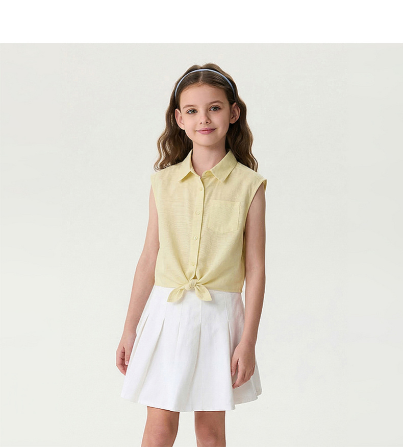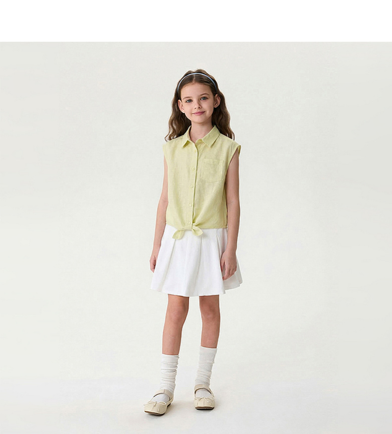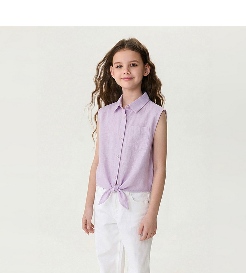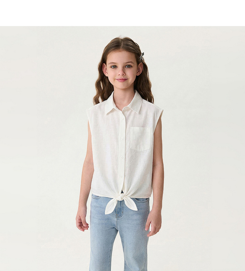 马克珍妮松弛假日女童棉麻扭结衬衫2026年夏装新款560592
