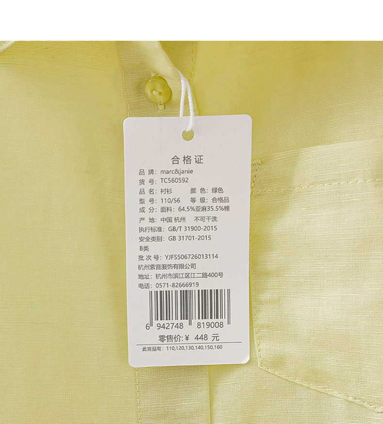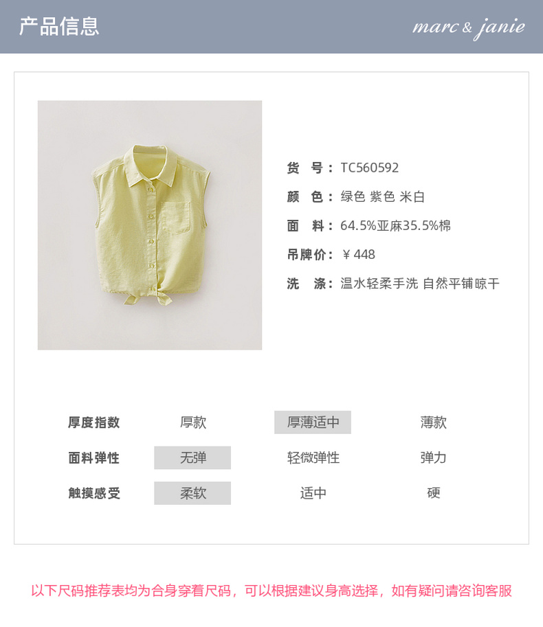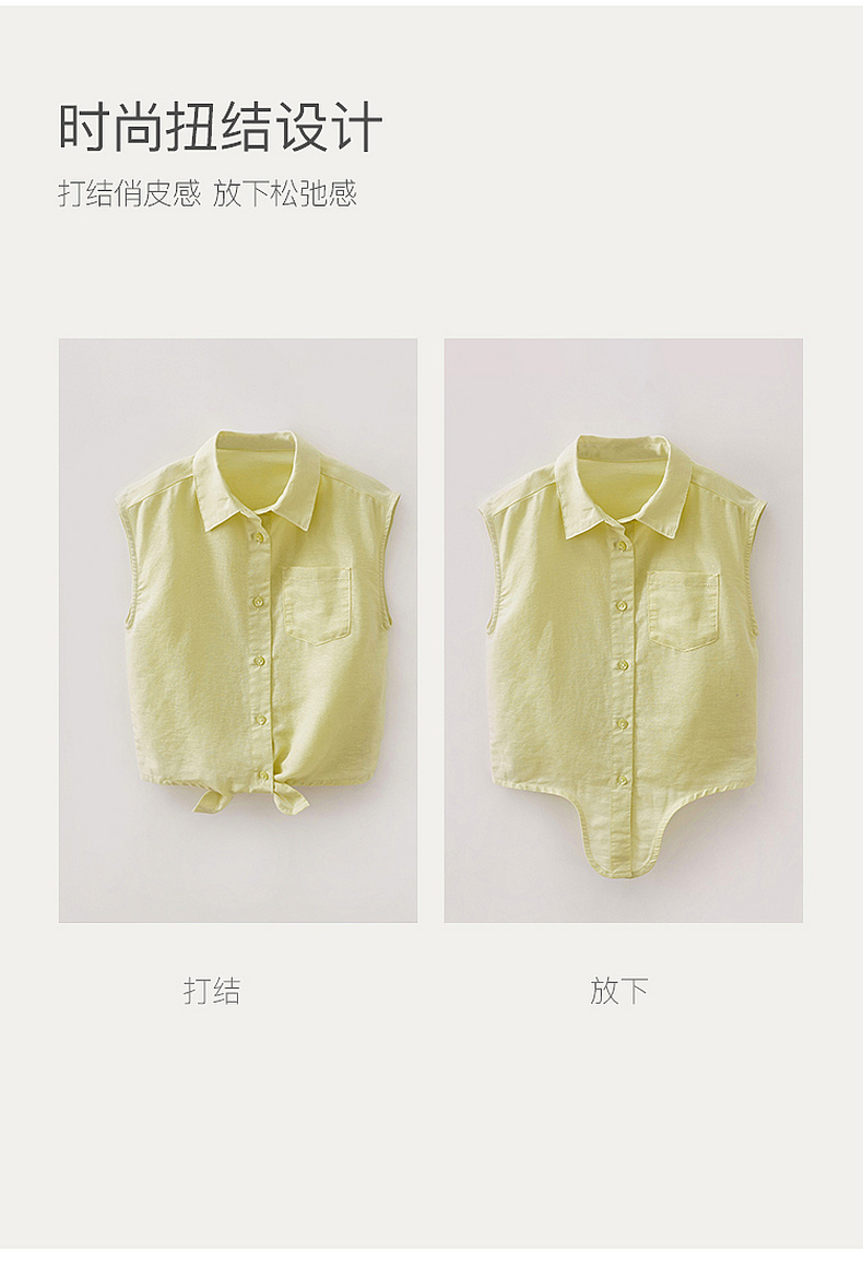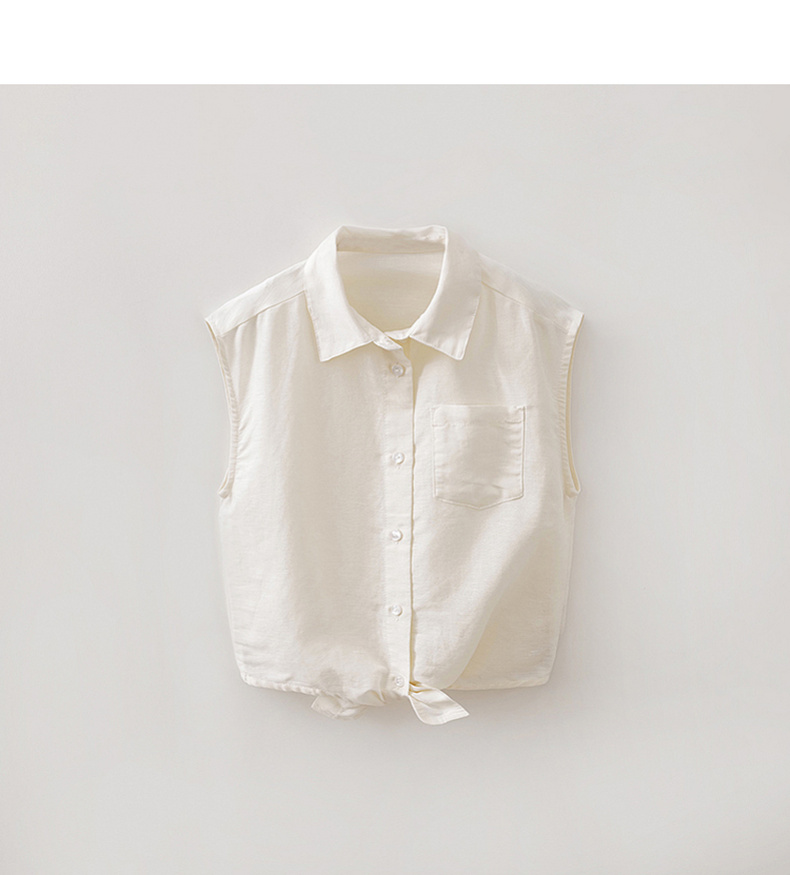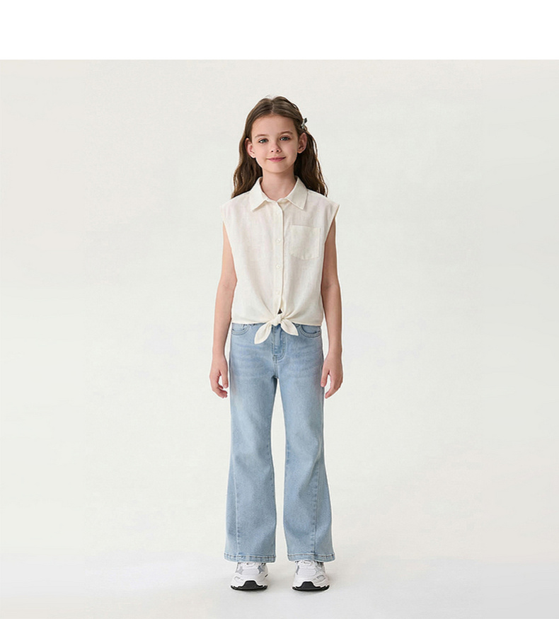 马克珍妮松弛假日女童棉麻扭结衬衫2026年夏装新款560592