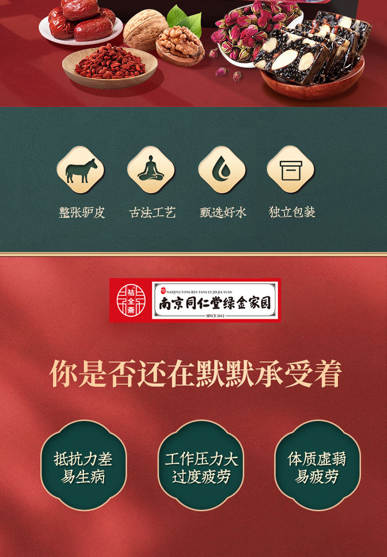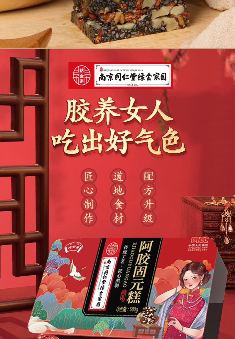 【严选推荐!南京同仁堂阿胶固元糕】匠心制作,道地食材,铁盒装女性气血手工核桃阿胶膏块即食节日送礼物优选
