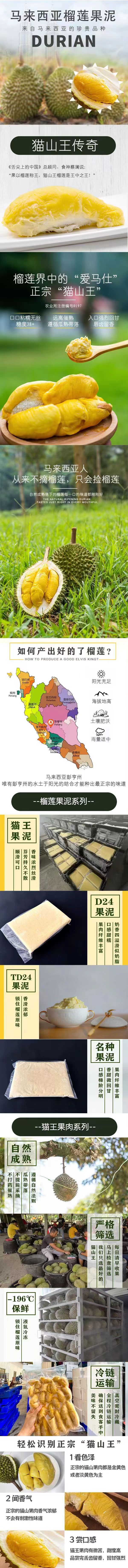 马来西亚冷冻金枕榴莲肉果泥榴莲果肉树上熟新鲜榴莲千层蛋糕榴莲芝士披萨烘焙原料猫山王D197果泥