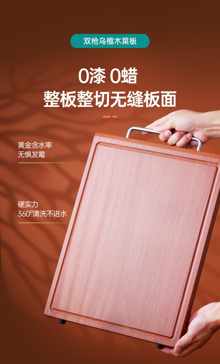 【双枪正品整木乌檀木菜板】高端木菜板销量TOP1