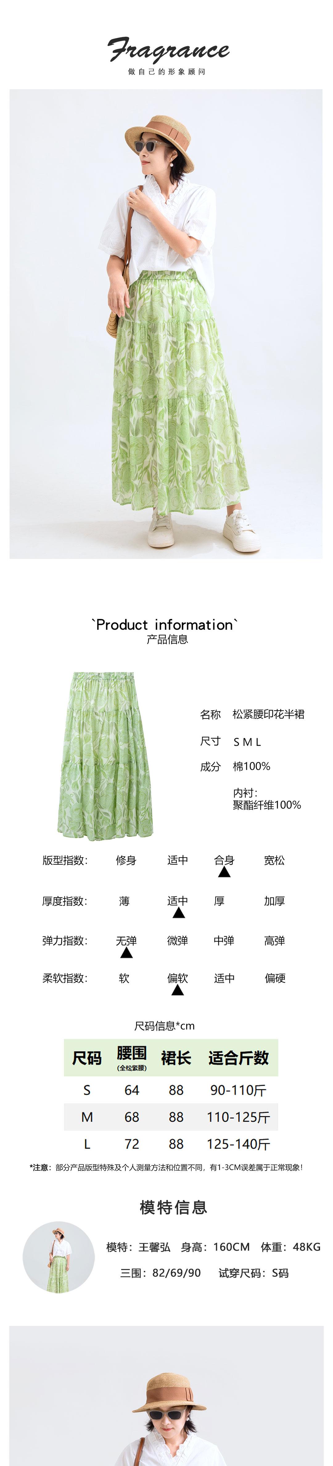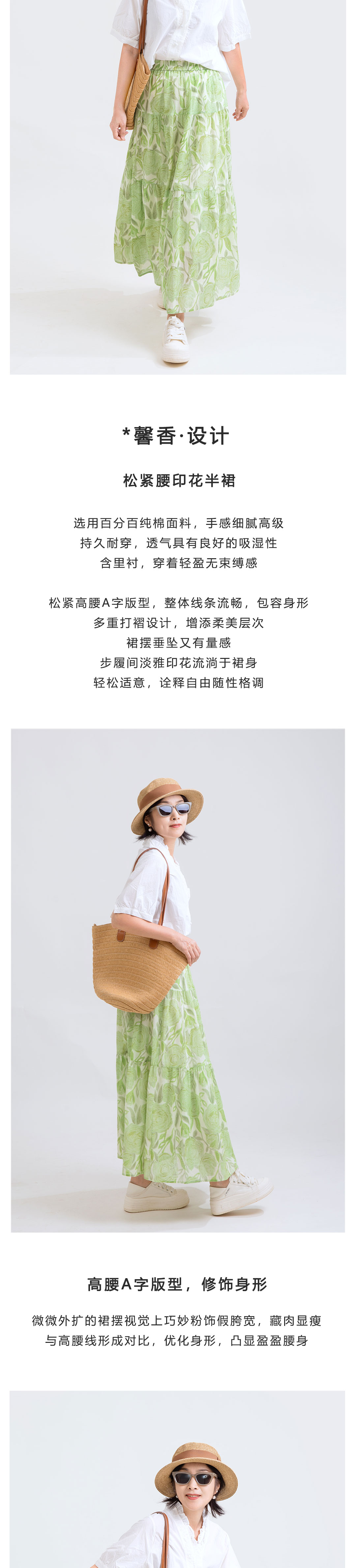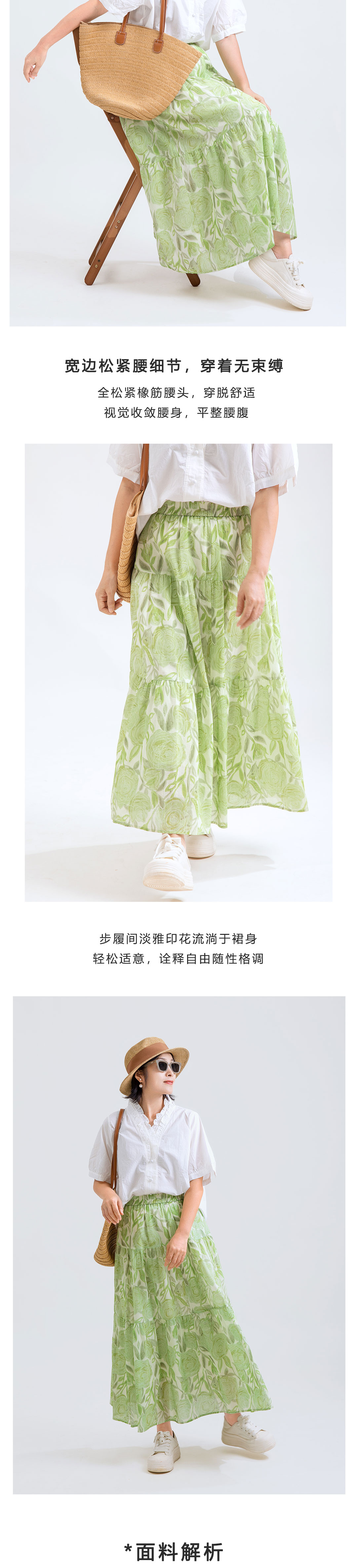 松紧腰印花半裙