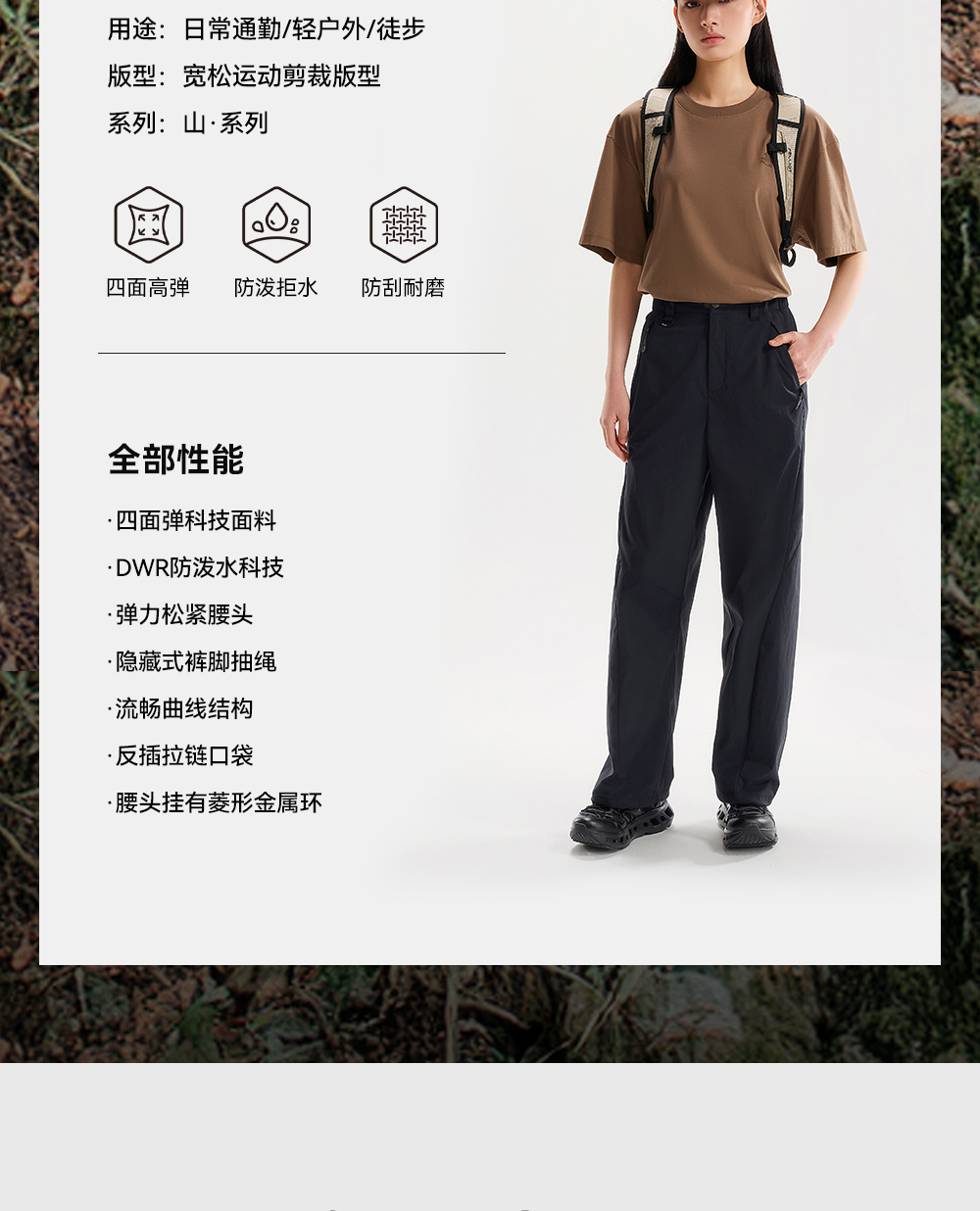 【山系】伯希和户外休闲裤女防泼水弹力徒步登山长裤宽松运动裤