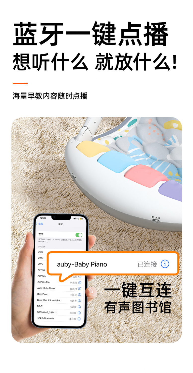 【澳贝】新生婴儿感统训练脚踏钢琴摇摇乐蓝牙健身架