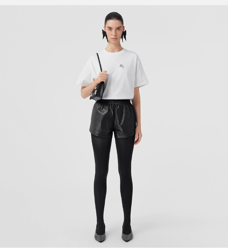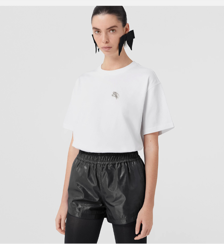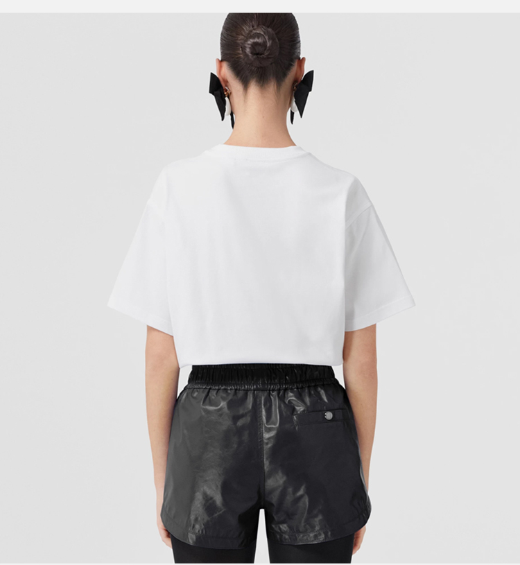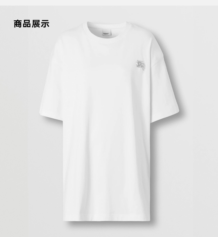 BURBERRY 巴宝莉 女士人造水晶马术骑士装饰棉质宽松圆领短袖T恤 白色 8065027 A1464