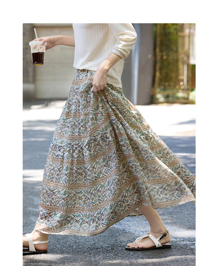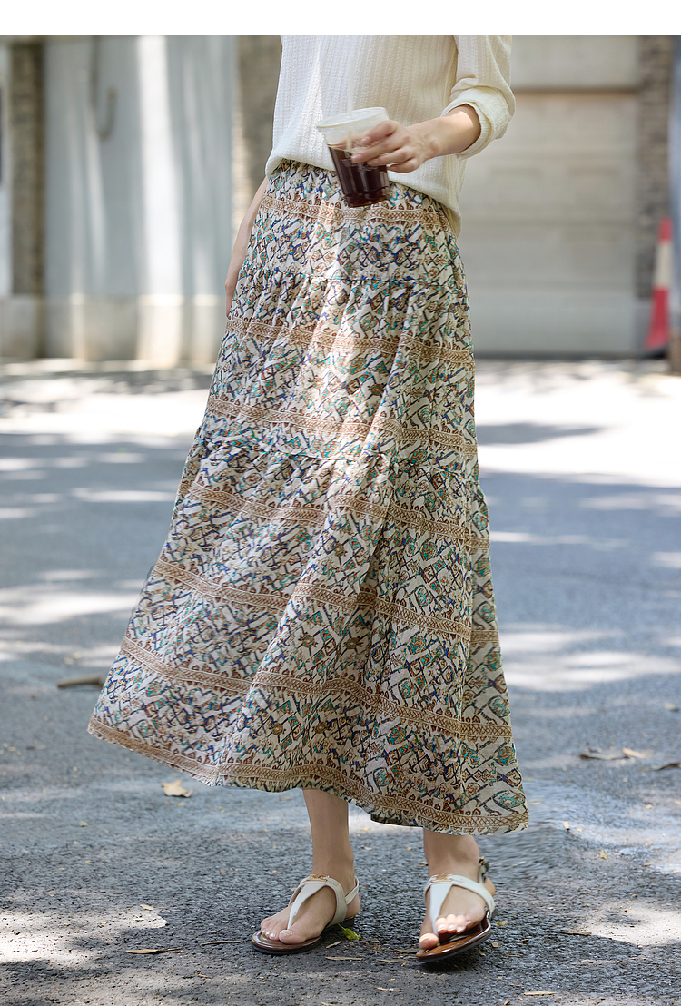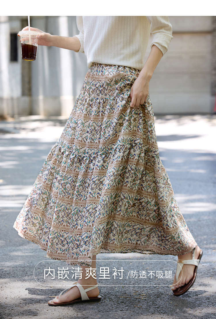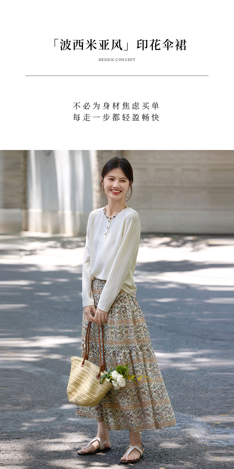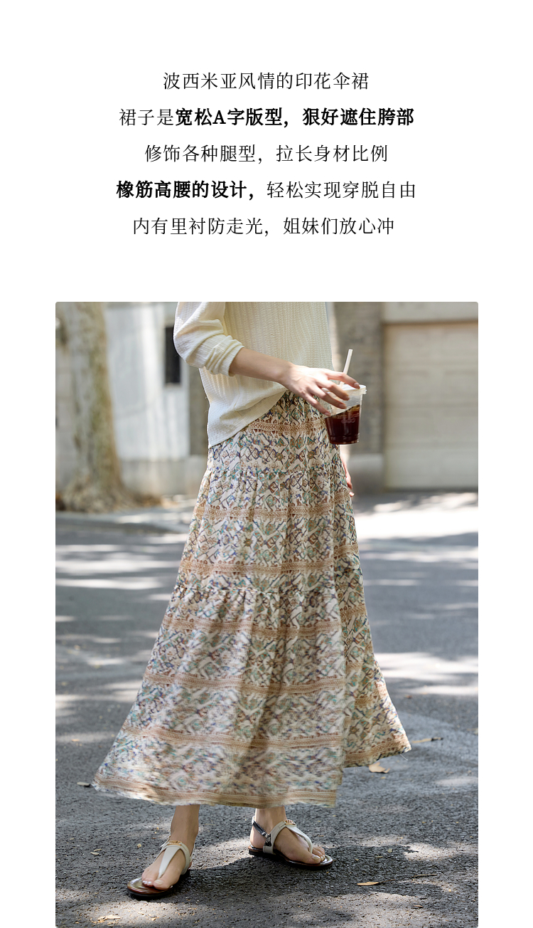【08/12新品】熙世界波西米亚风印花半身裙女2025秋季新款高腰气质a字伞裙长裙
