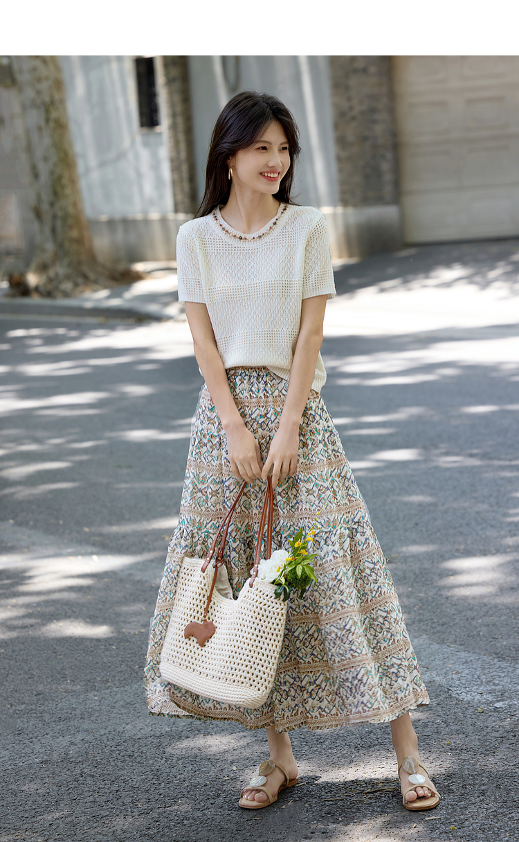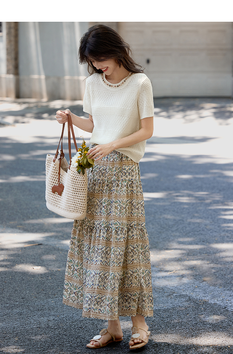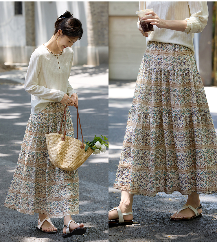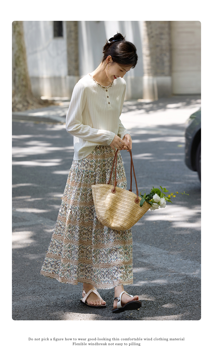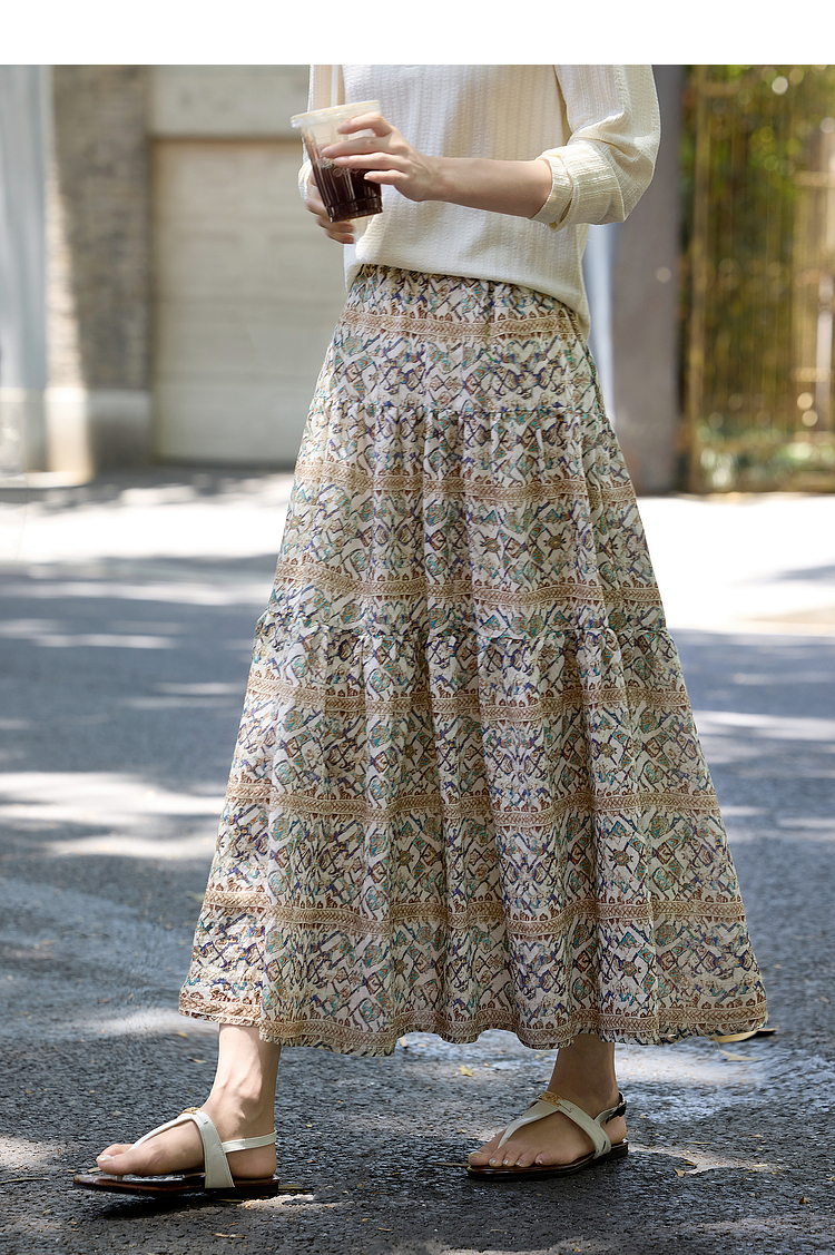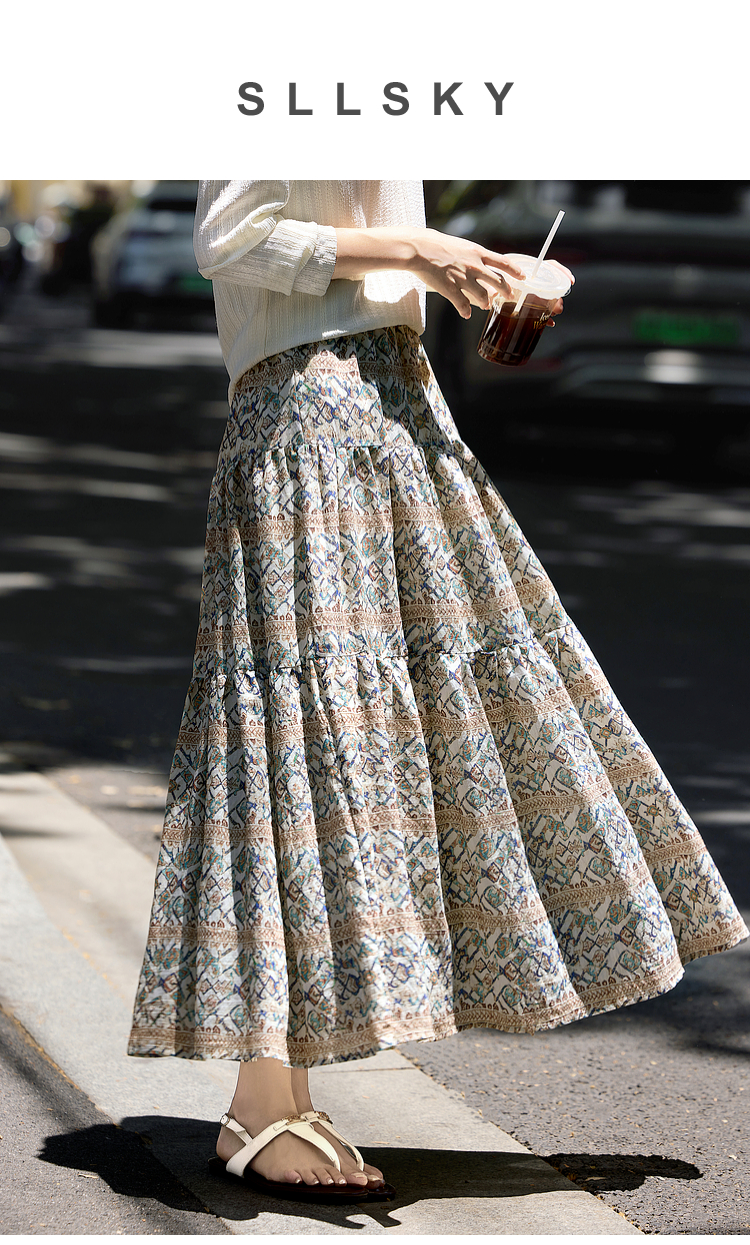 【08/12新品】熙世界波西米亚风印花半身裙女2025秋季新款高腰气质a字伞裙长裙