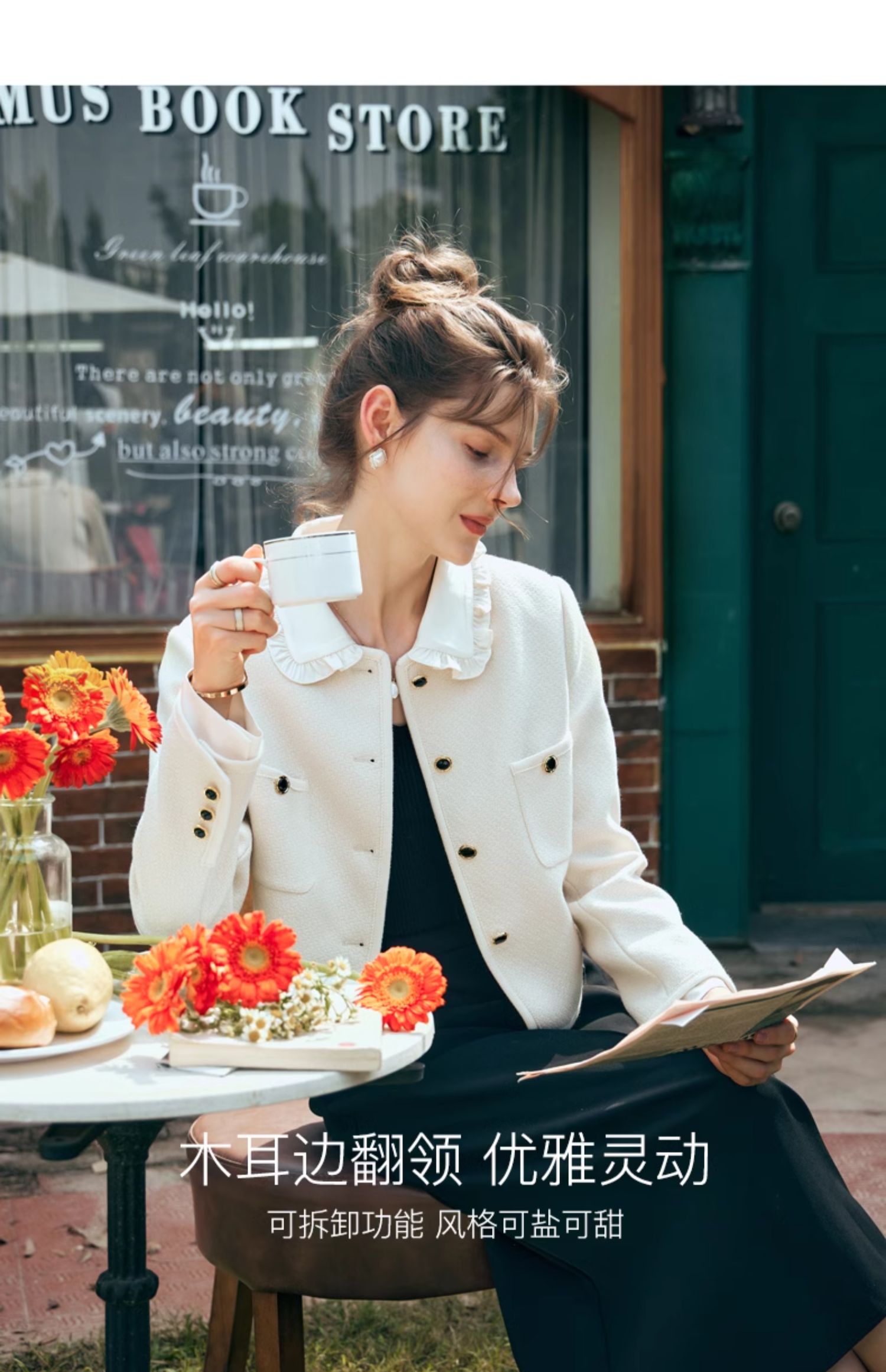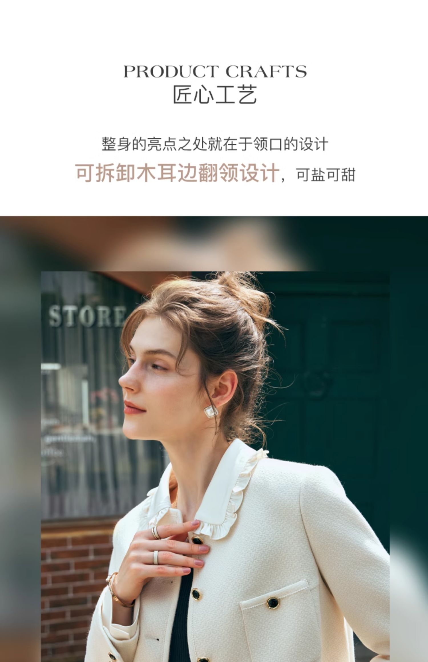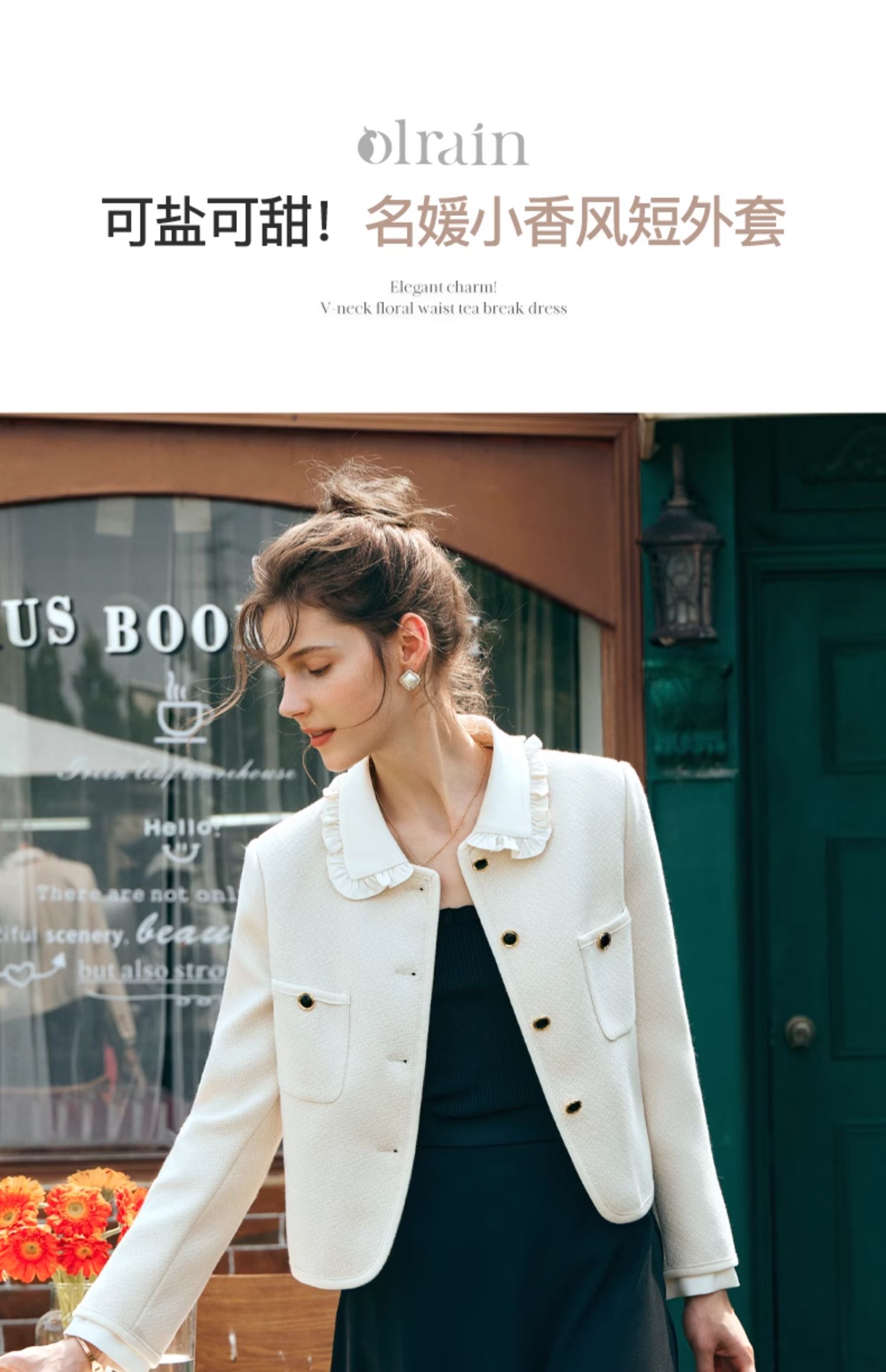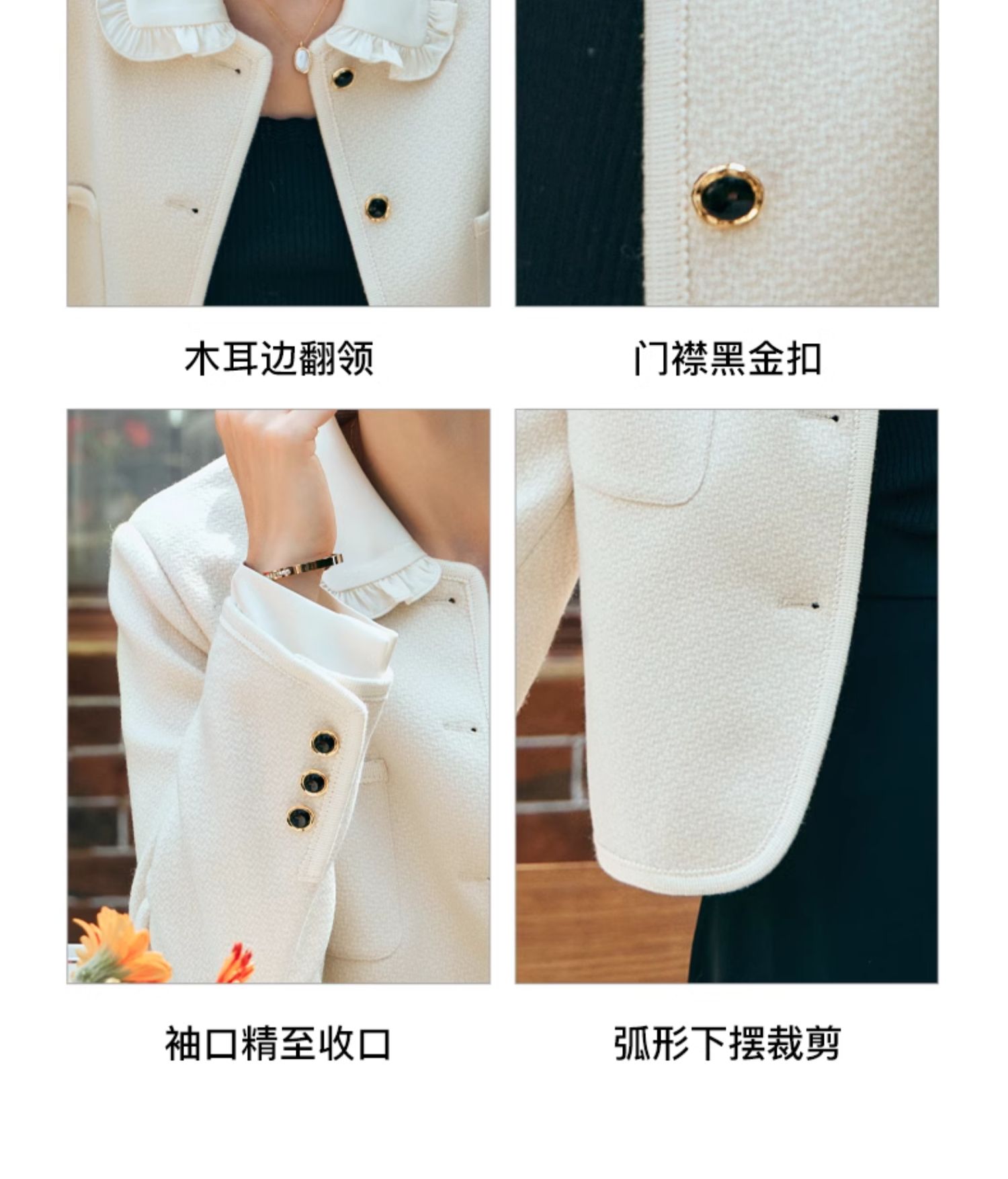 OLrain欧芮儿小香风短外套女早春2024年新款精致荷叶小翻领上衣
