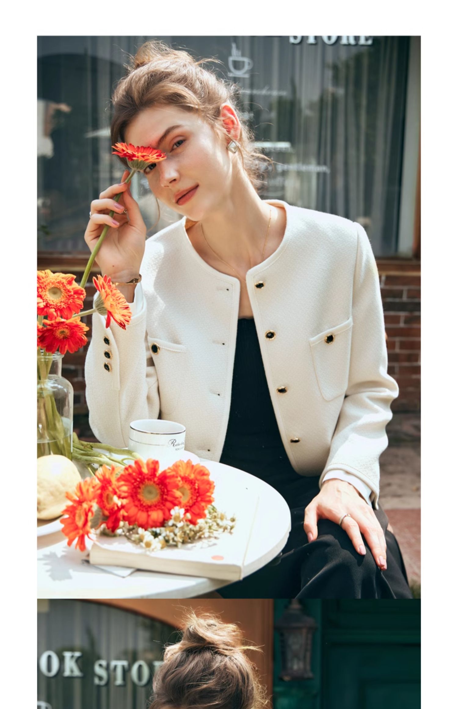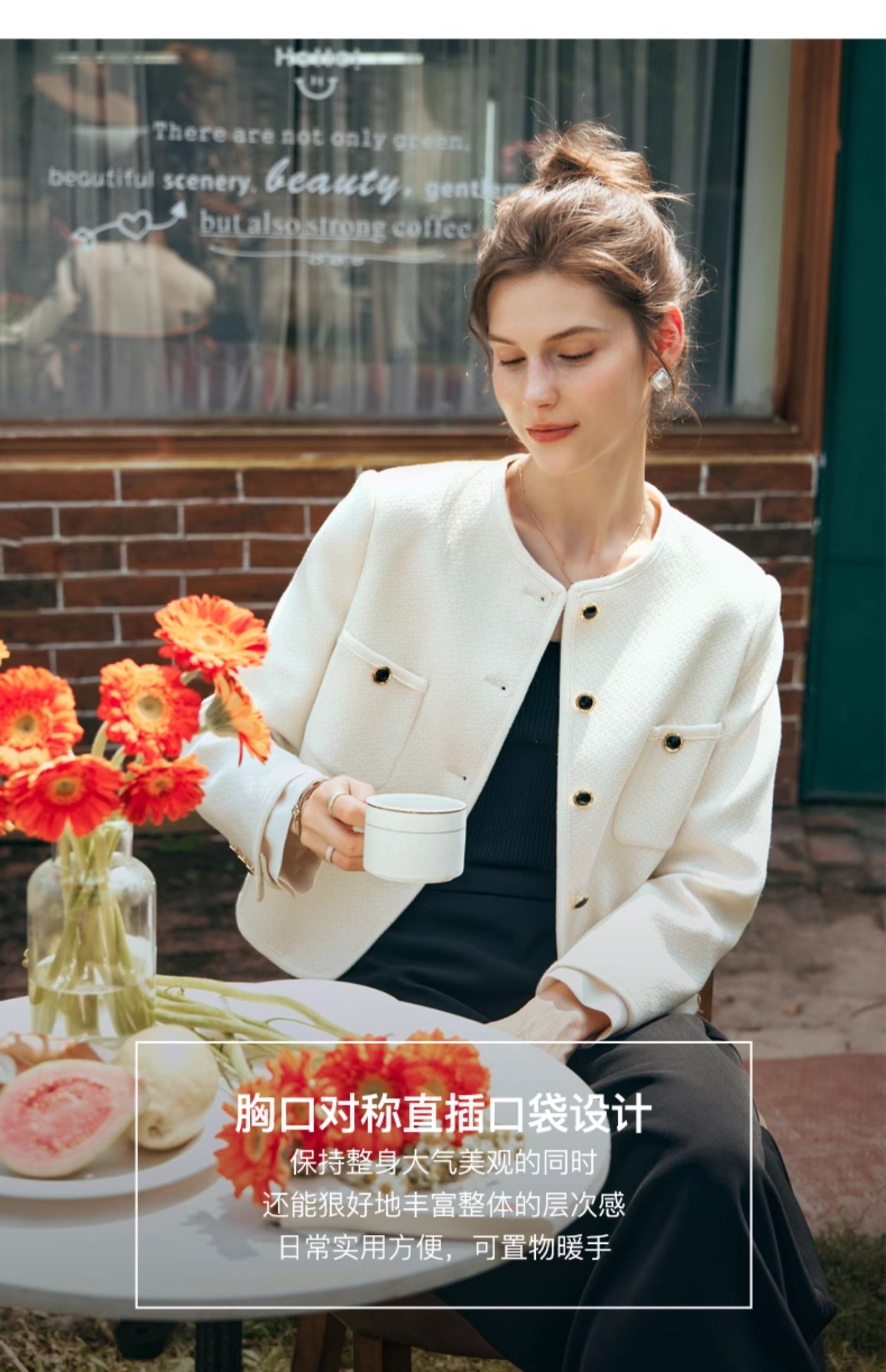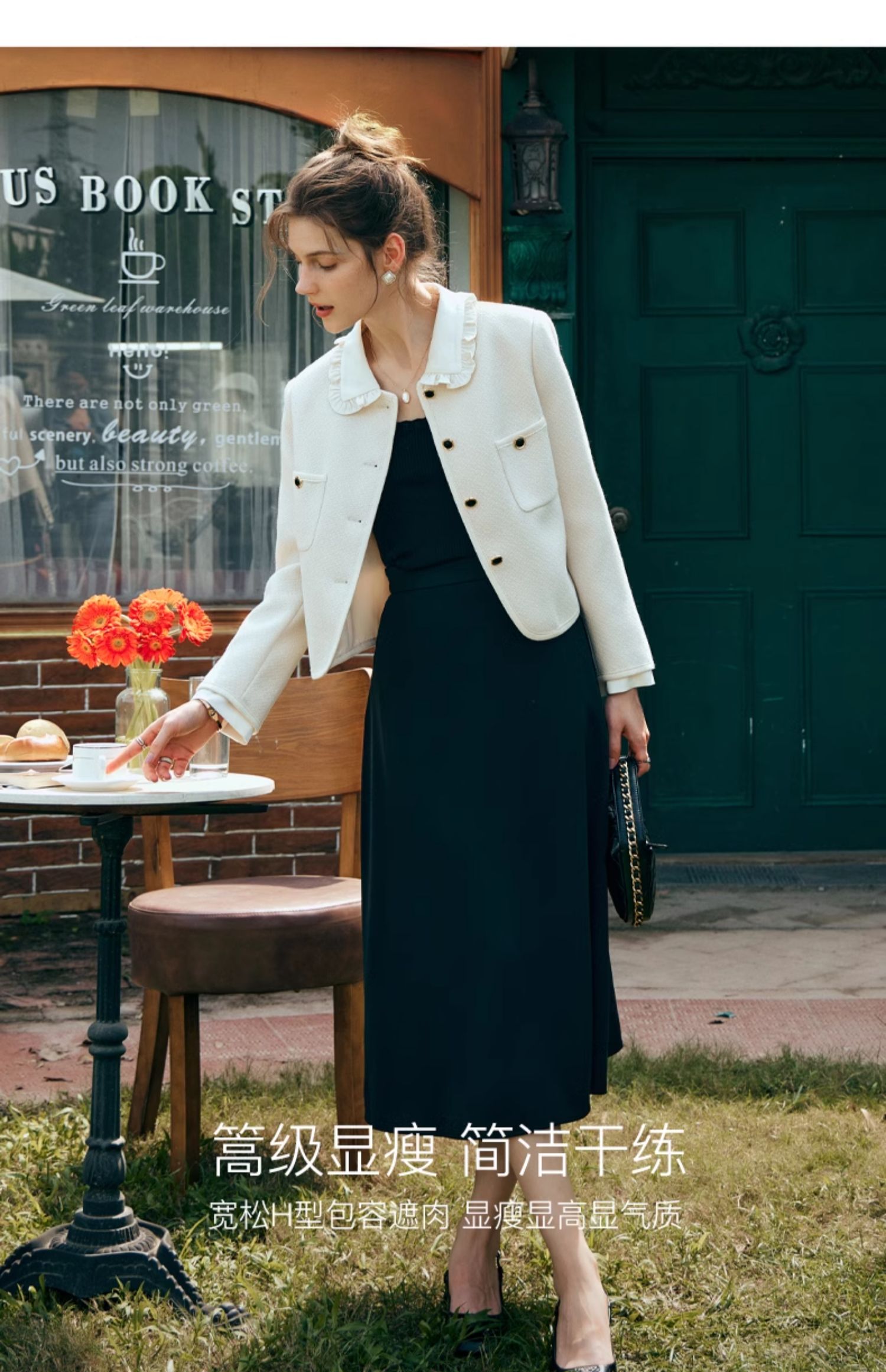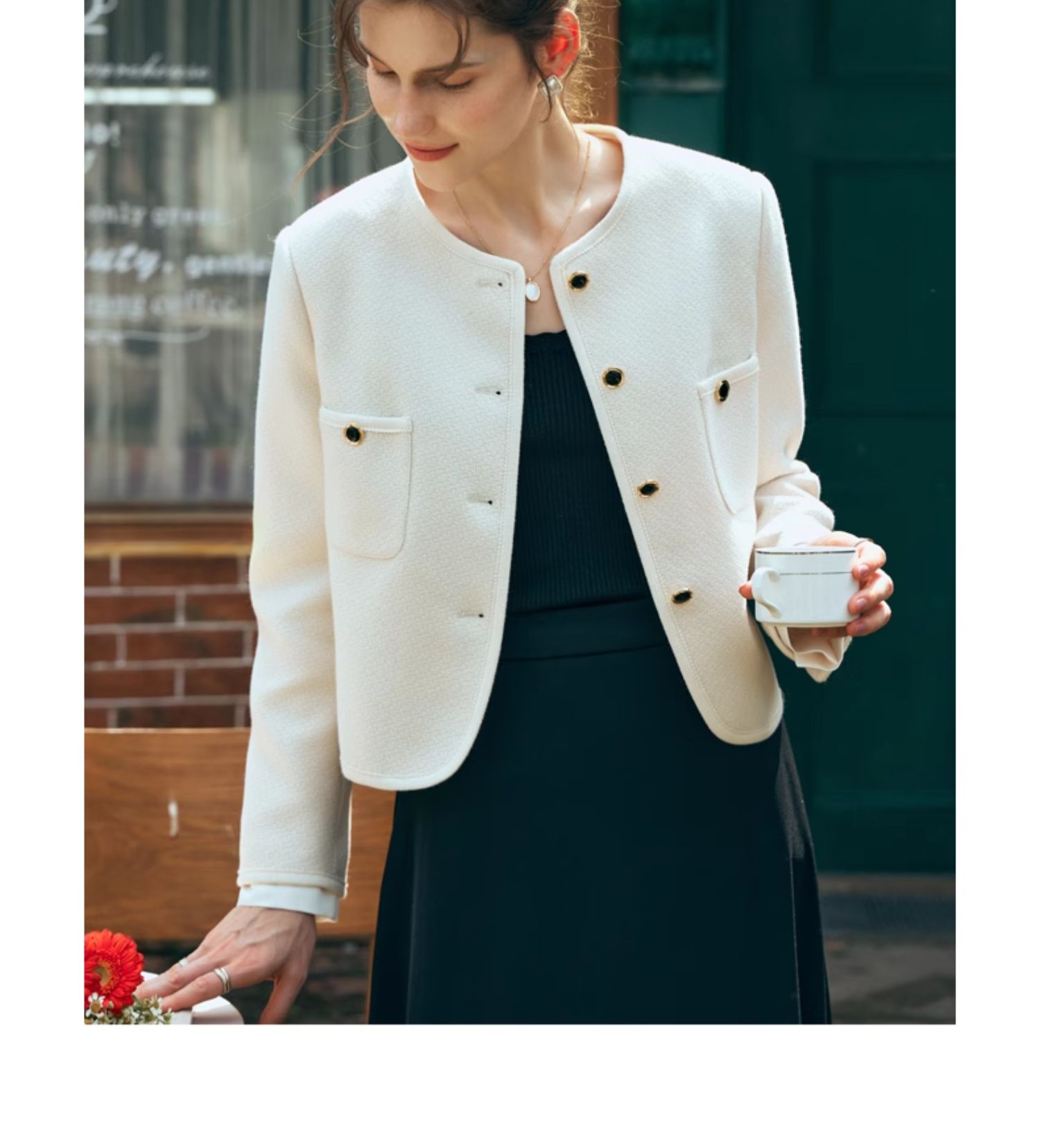 OLrain欧芮儿小香风短外套女早春2024年新款精致荷叶小翻领上衣