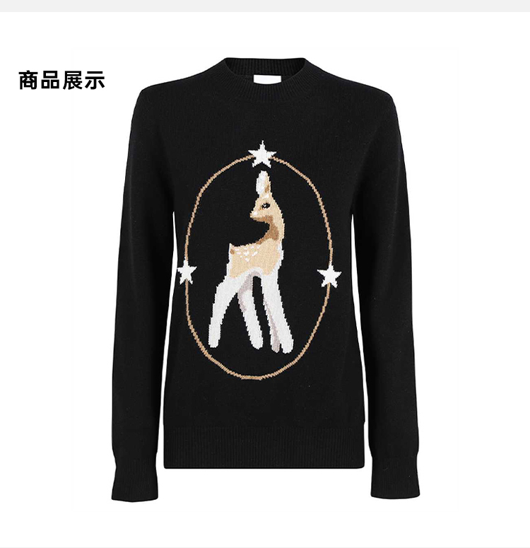 BURBERRY 巴宝莉 女士圆领小鹿嵌花羊毛混纺针织衫 黑色 8050612 A1189