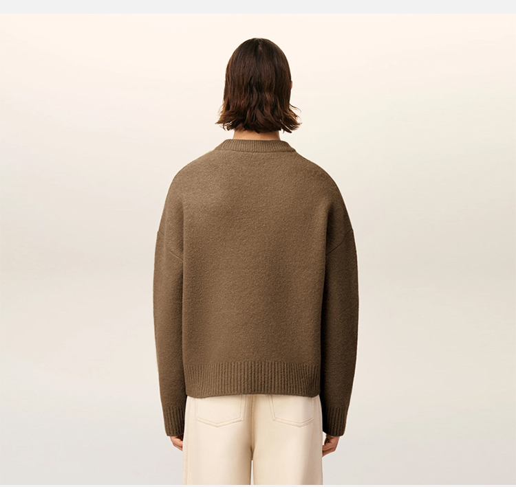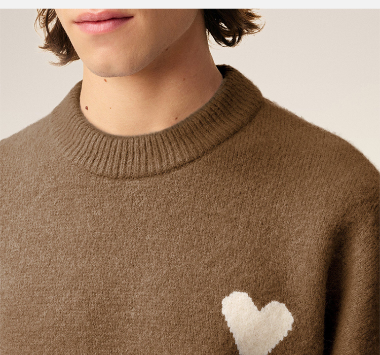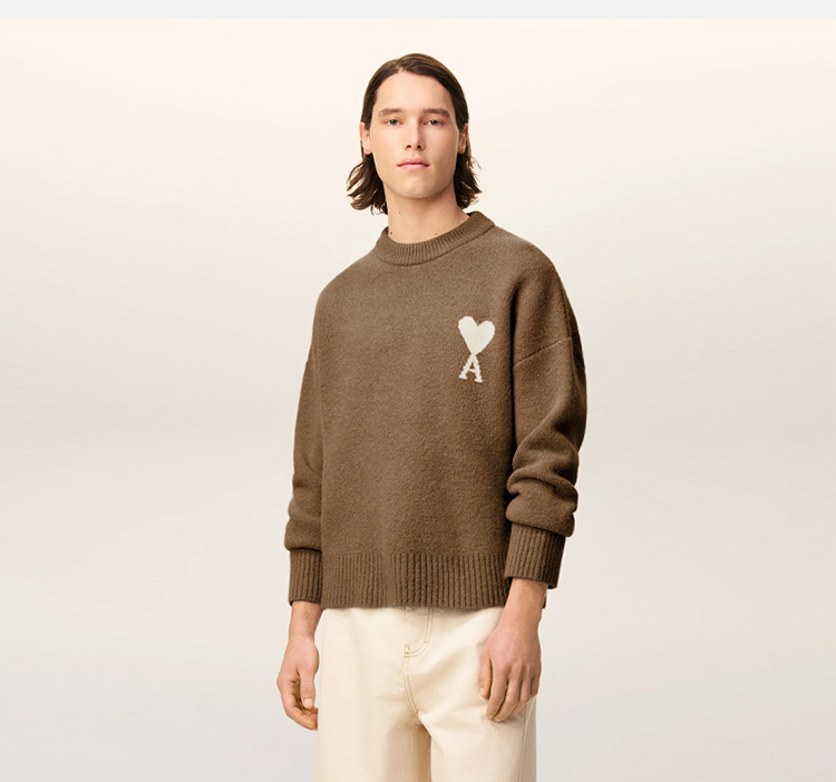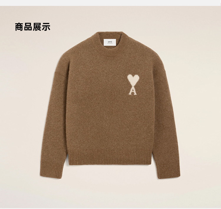 AMI 男女同款心形徽标嵌花混纺羊毛针织衫 棕色 UKS836 KN0135 217