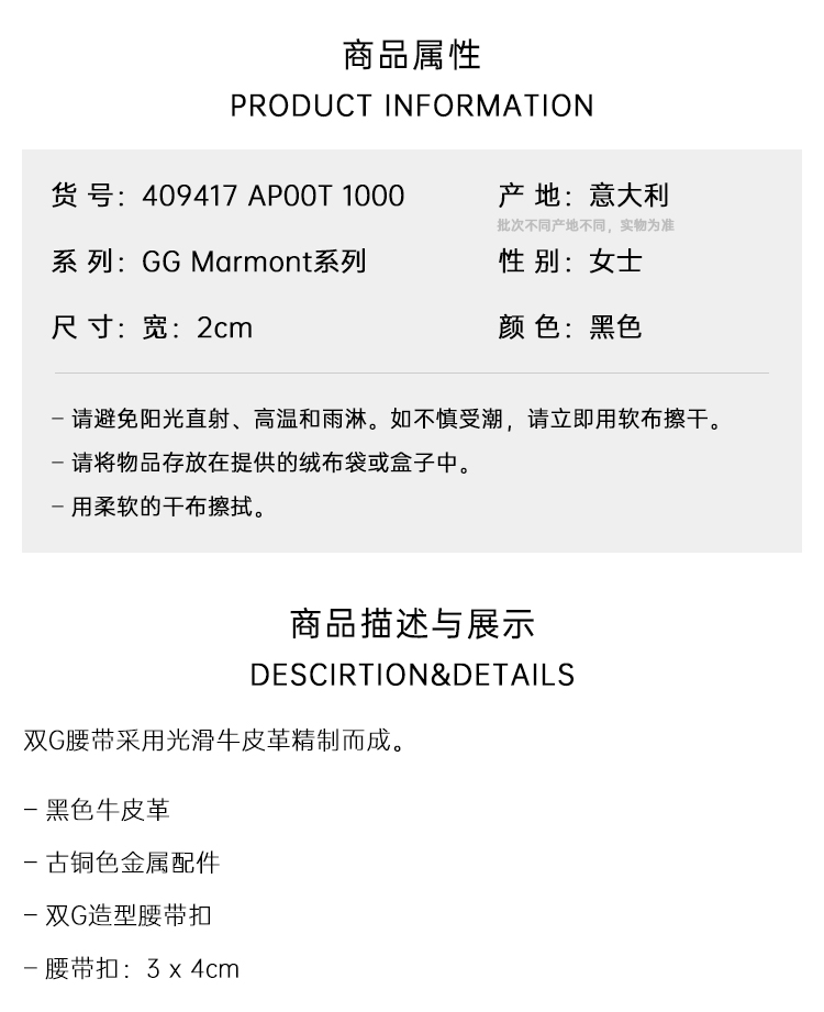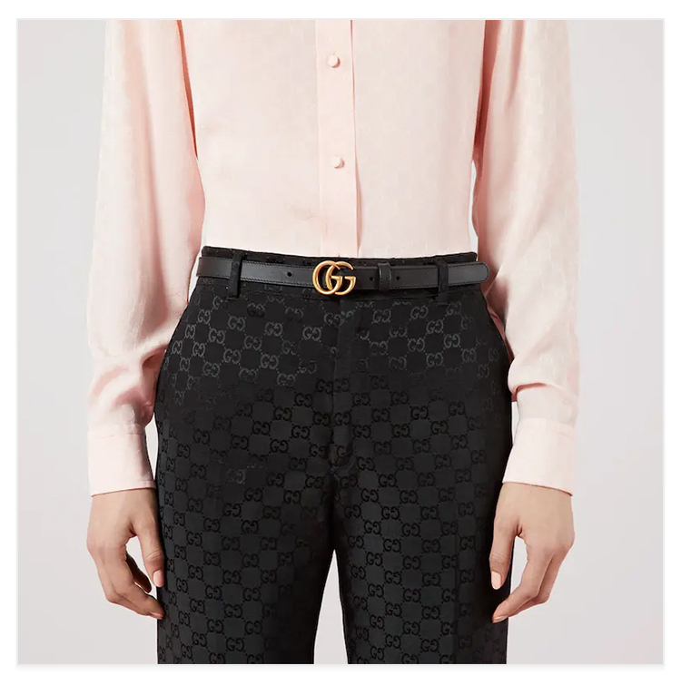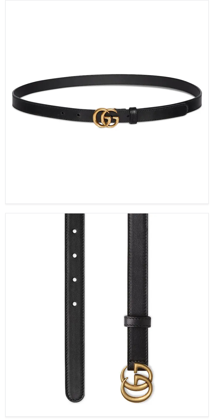 【四】GUCCI 古驰 女士GG Marmont系列窄版皮革腰带 黑色 409417 AP00T 1000