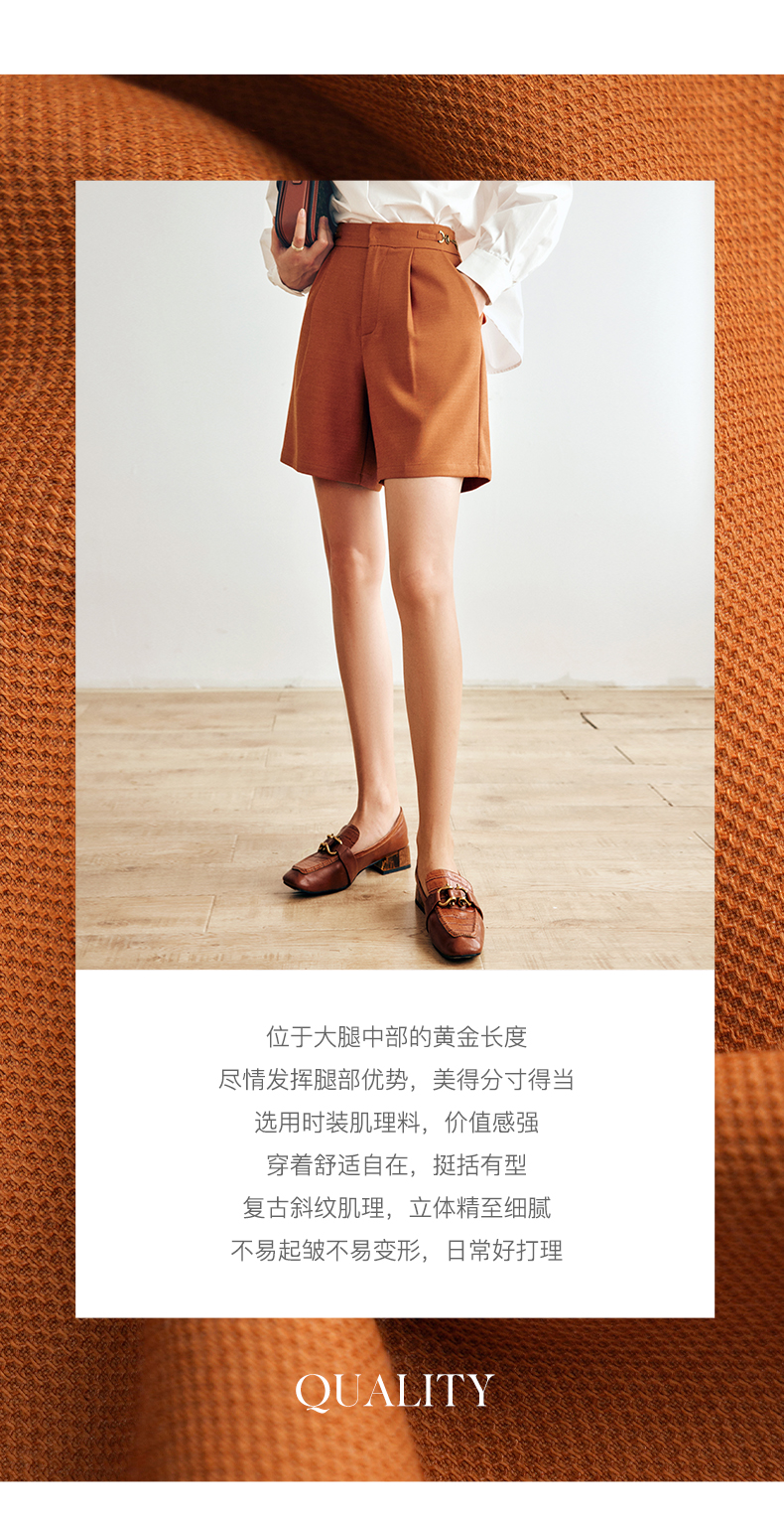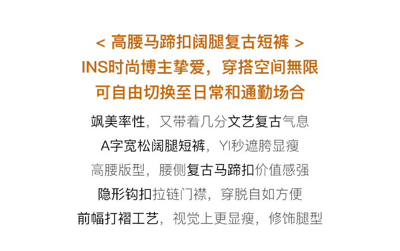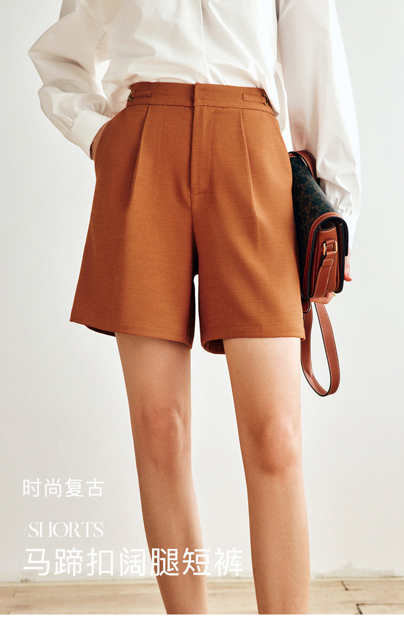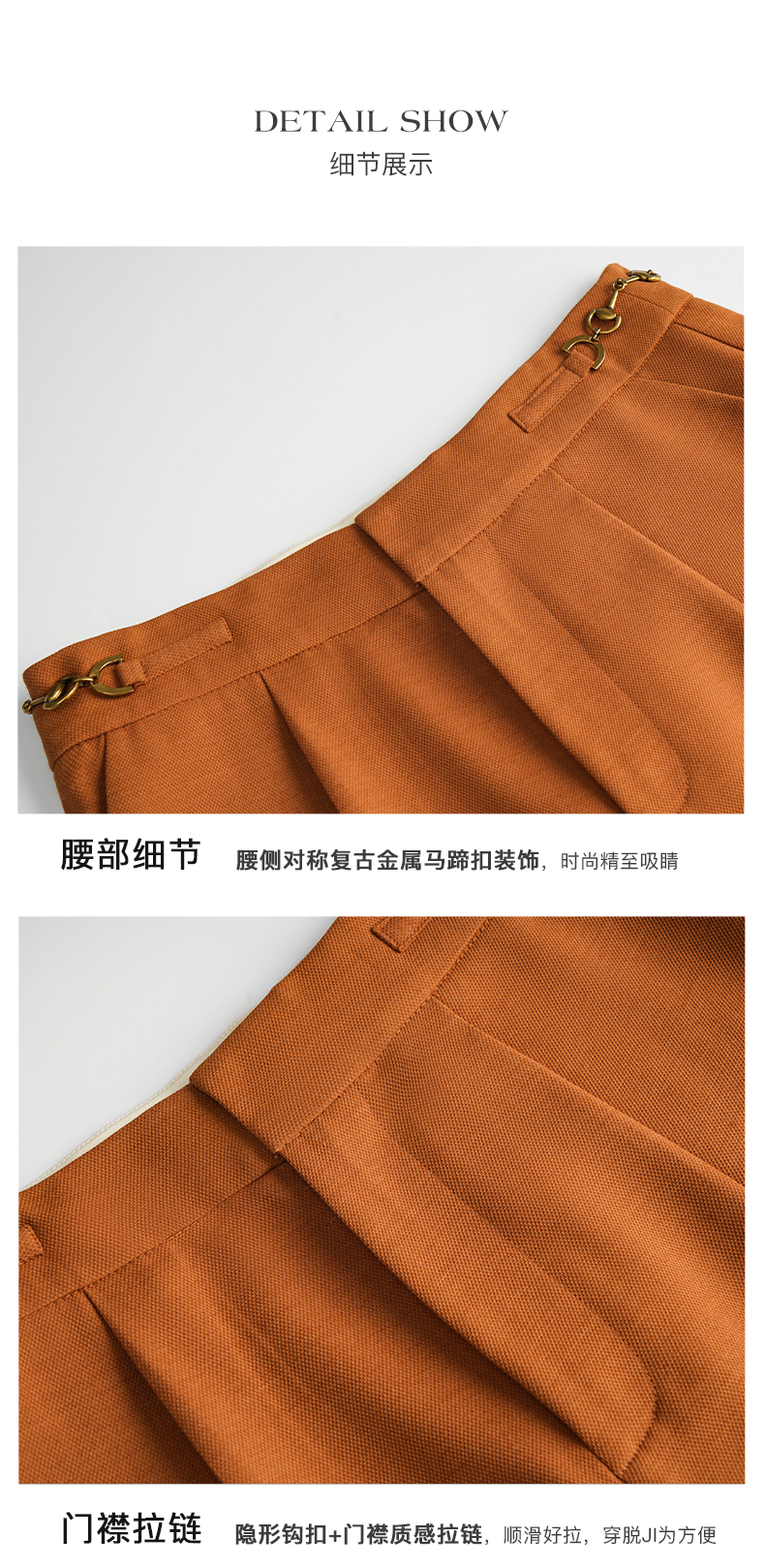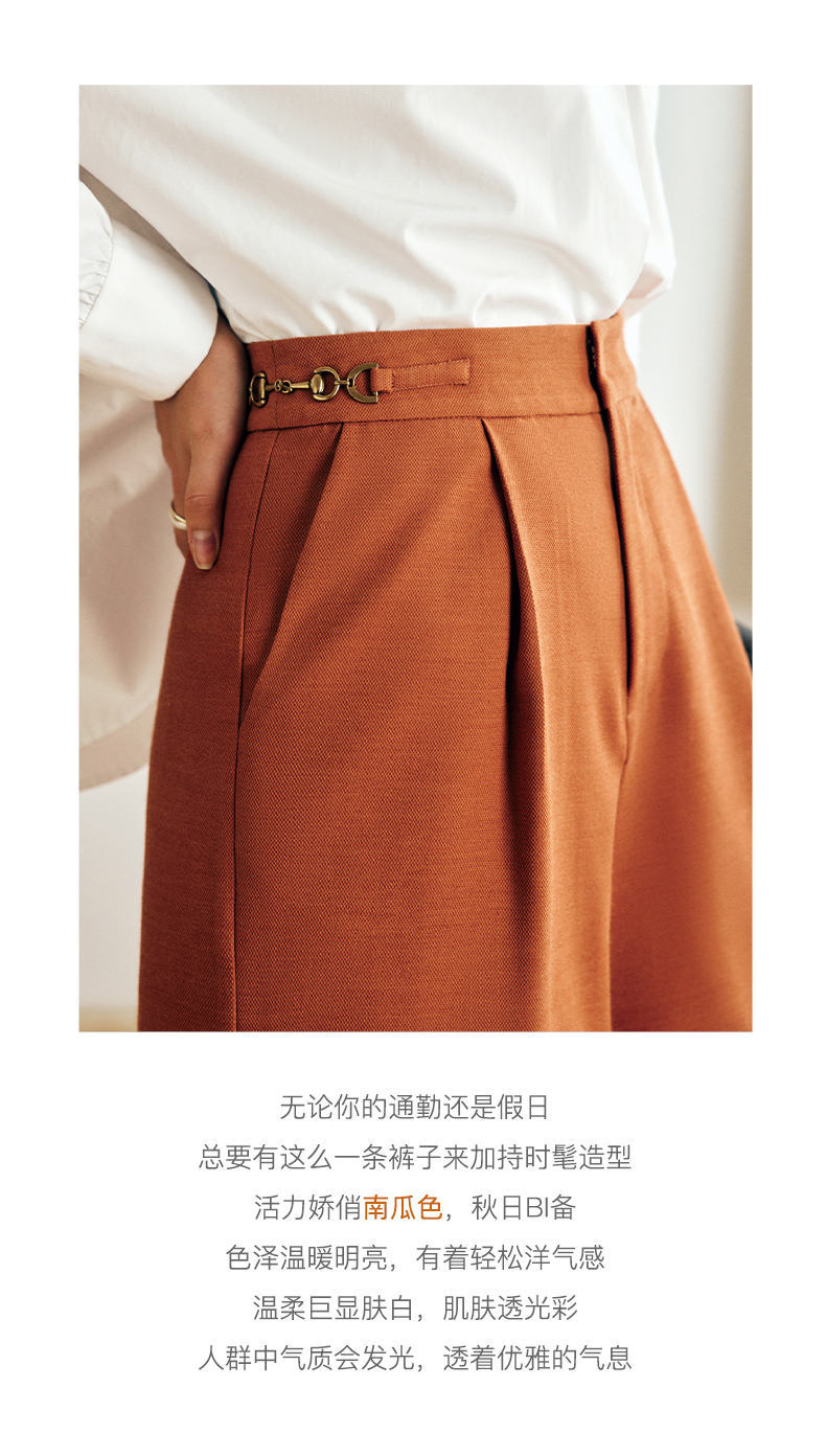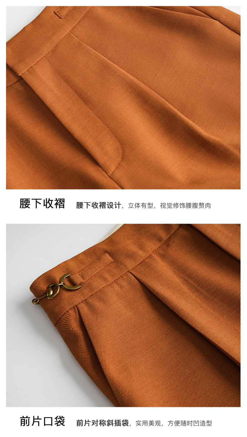 OLrain欧芮儿法式南瓜色休闲裤女春秋2022新款阔腿裤高腰直筒短裤