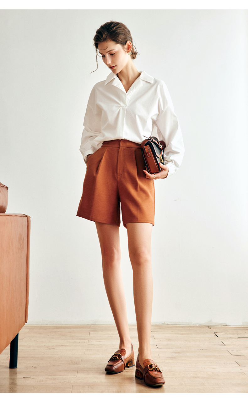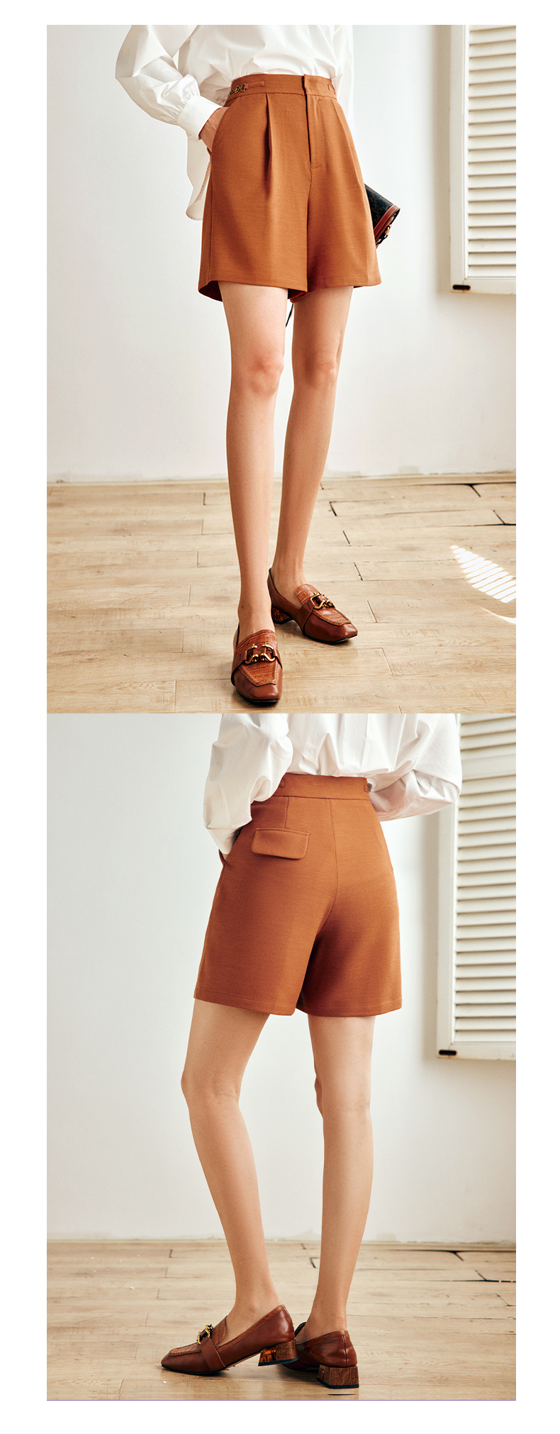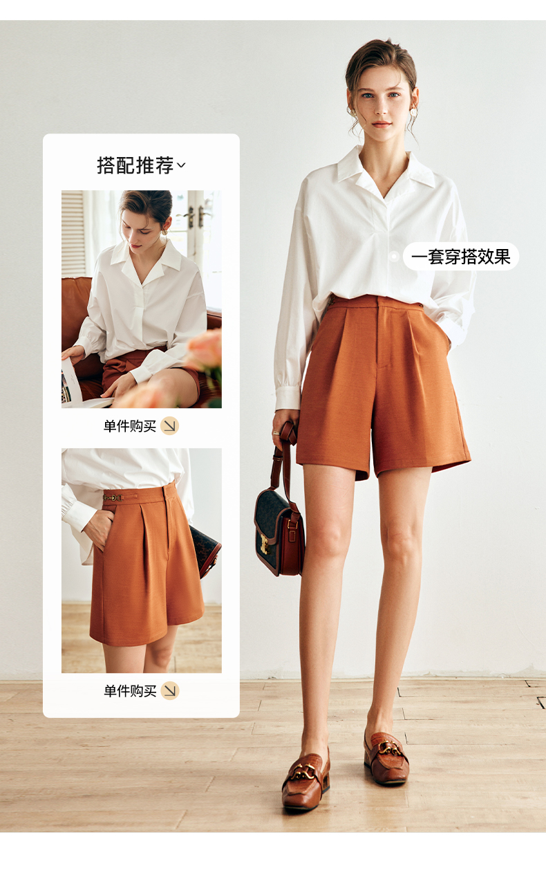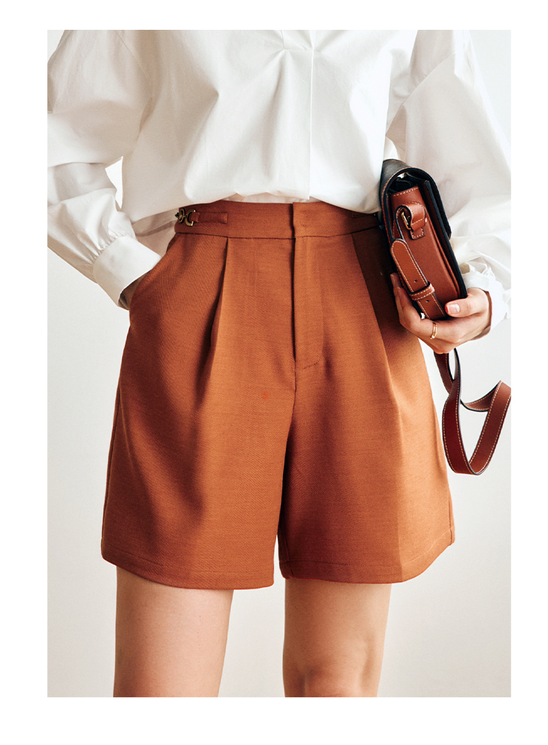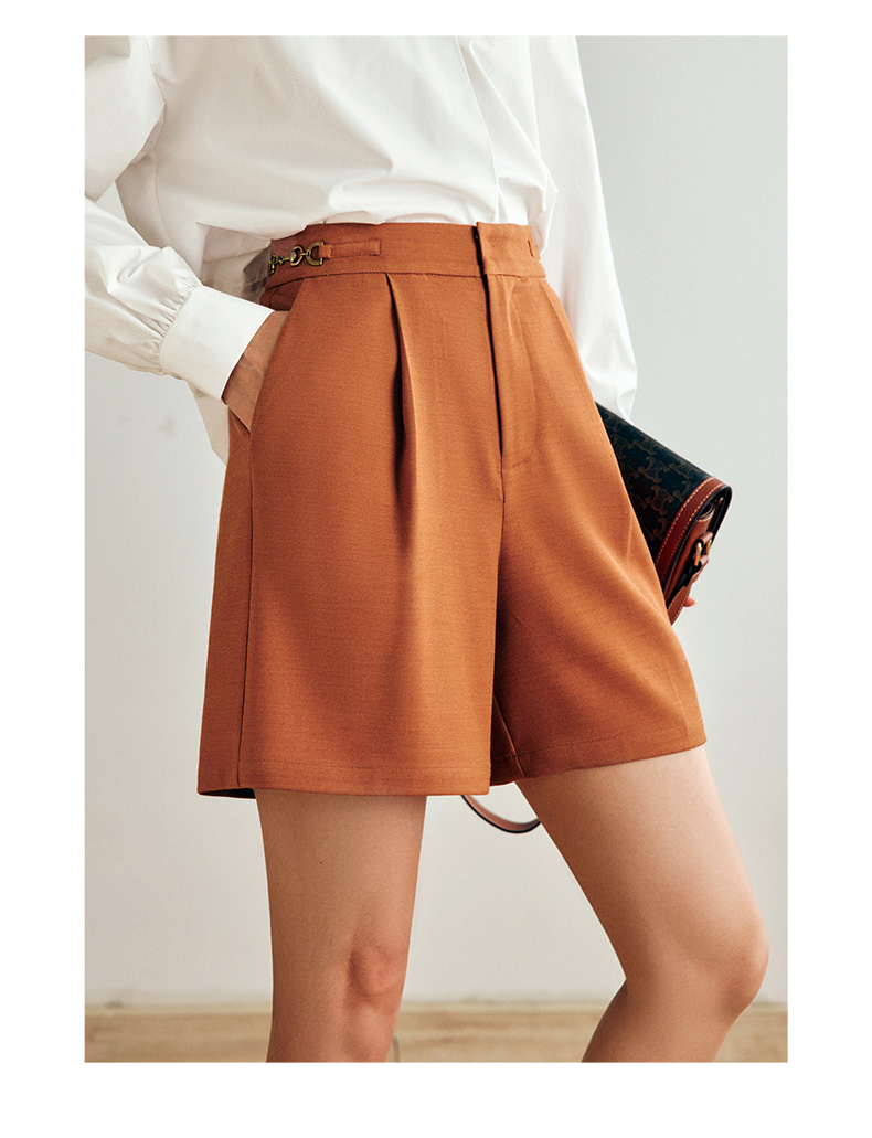 OLrain欧芮儿法式南瓜色休闲裤女春秋2022新款阔腿裤高腰直筒短裤