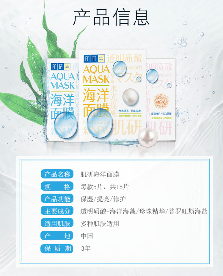 产品明细:肌研海洋面膜保湿22ml单片*5