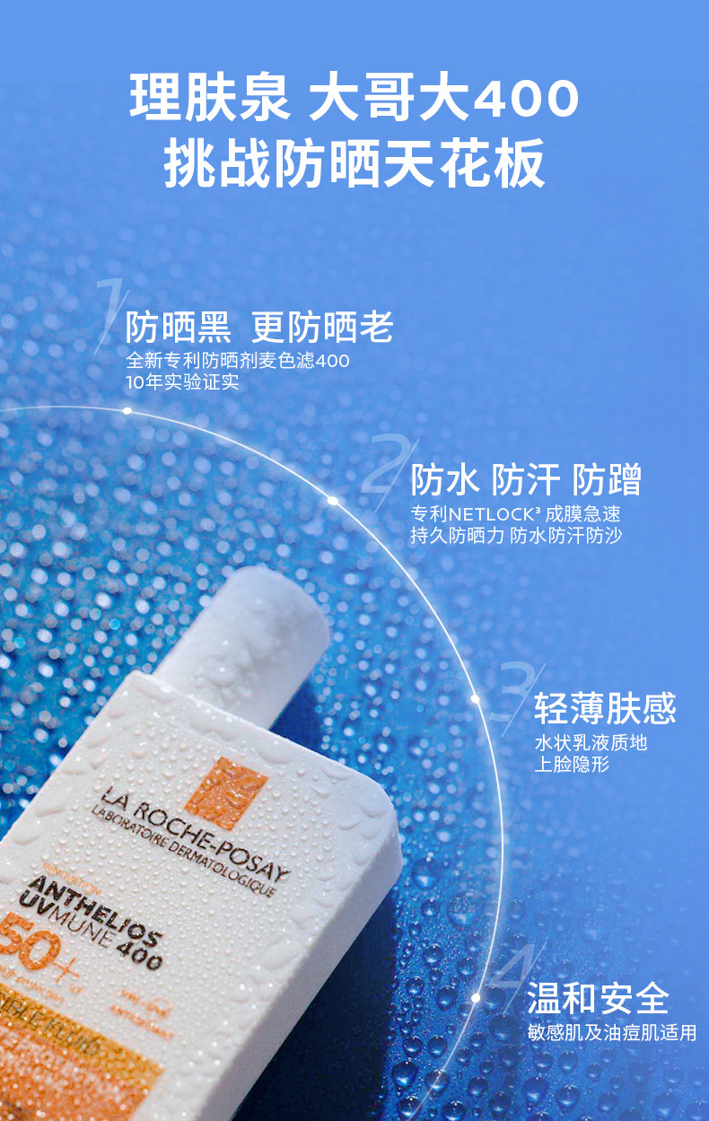 理肤泉防晒大哥大 400户外高倍防晒防水防汗清爽抗光老50ml