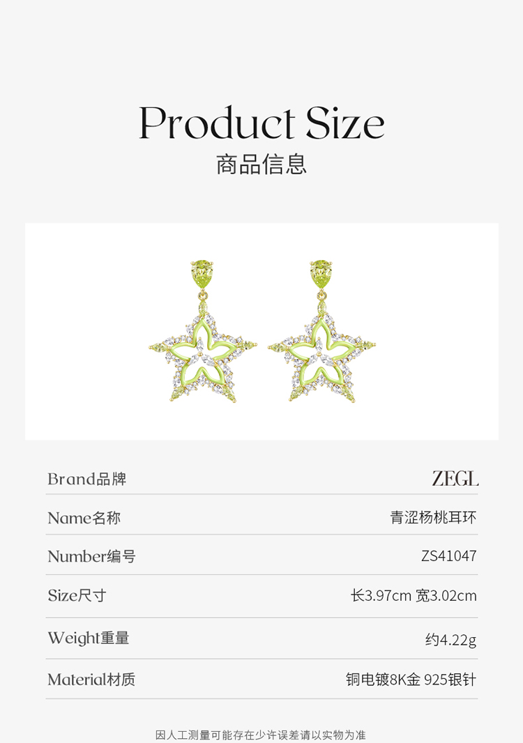 ZEGL设计师水果系列杨桃耳环女2023新款爆款独特耳钉925银针耳饰