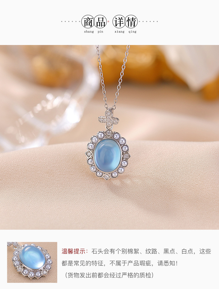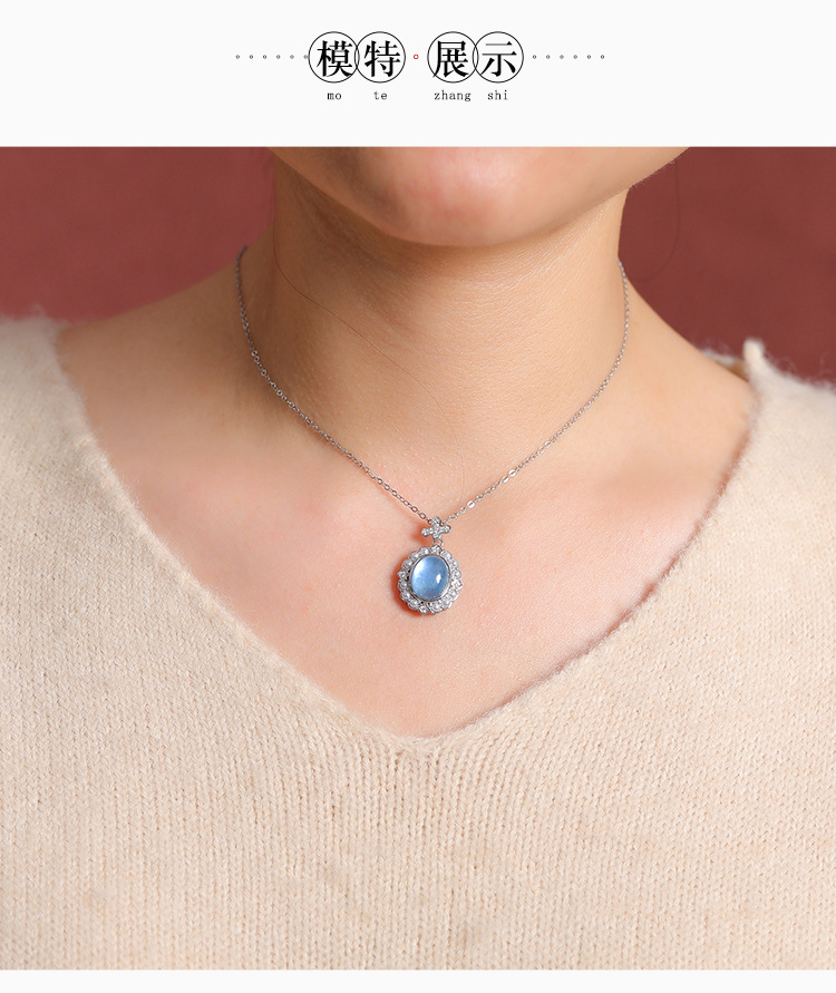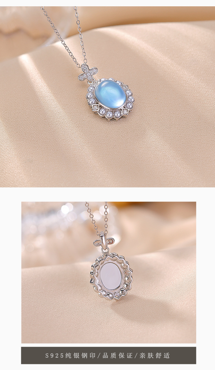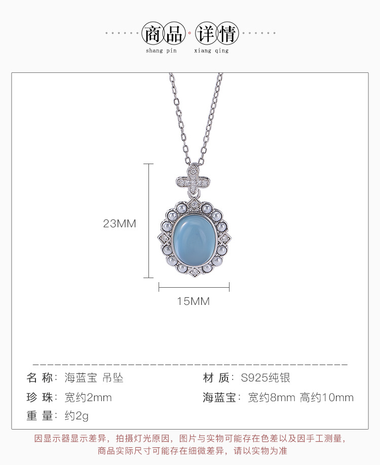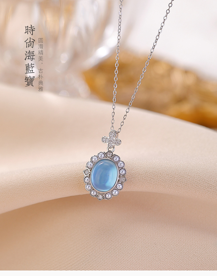 【深海安然】S925纯银海蓝宝珍珠几何蛋面吊坠【CW-DZ07152】