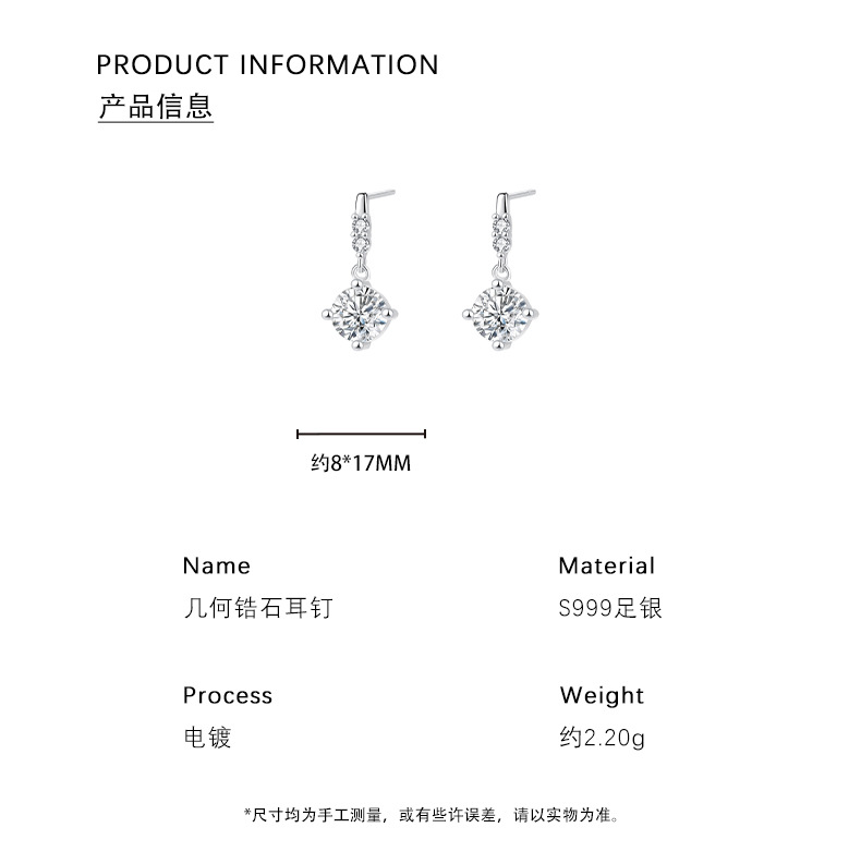 【斗雪】s999纯银四爪锆石耳饰【YXS-E5126】 商品图4