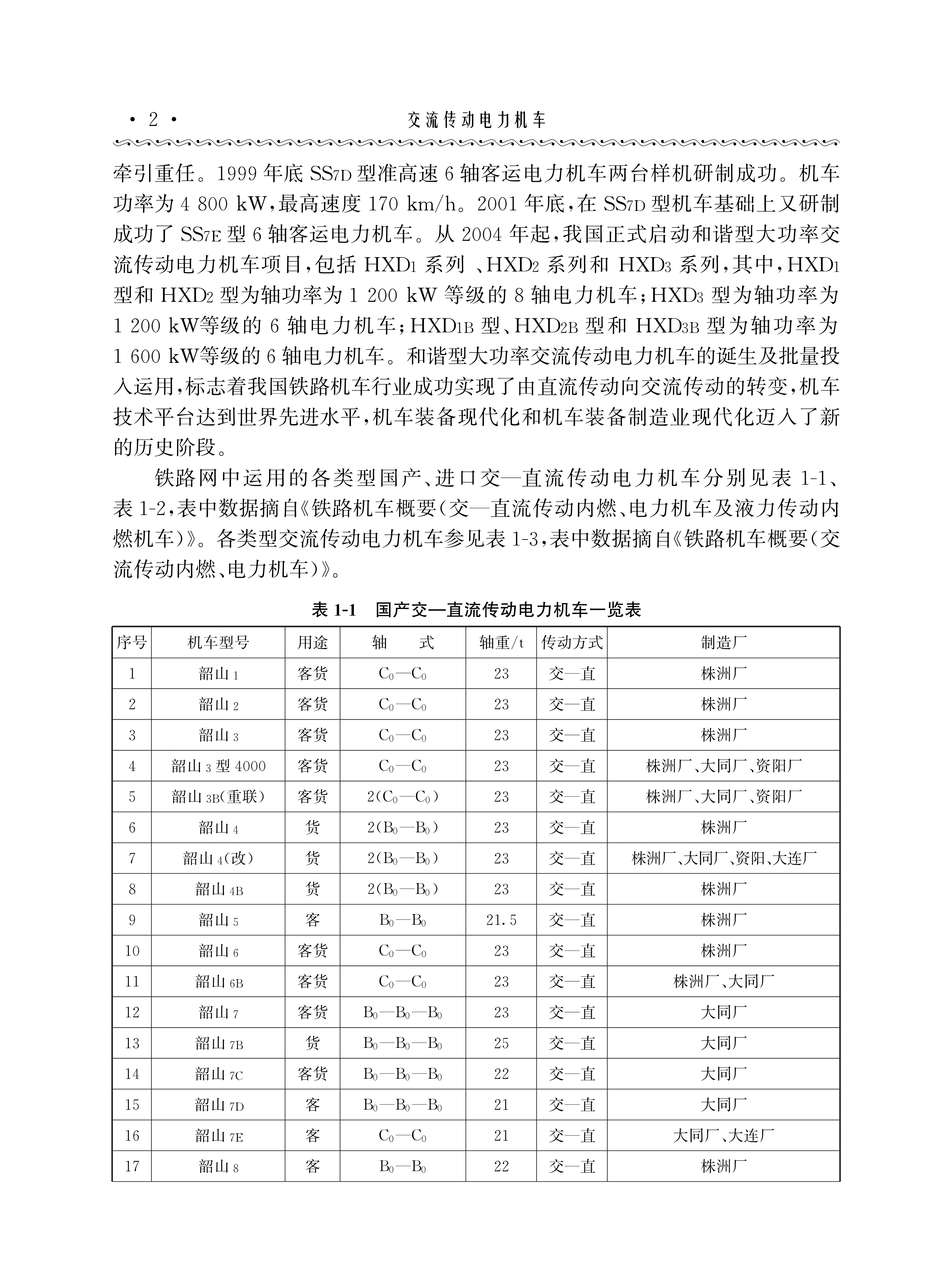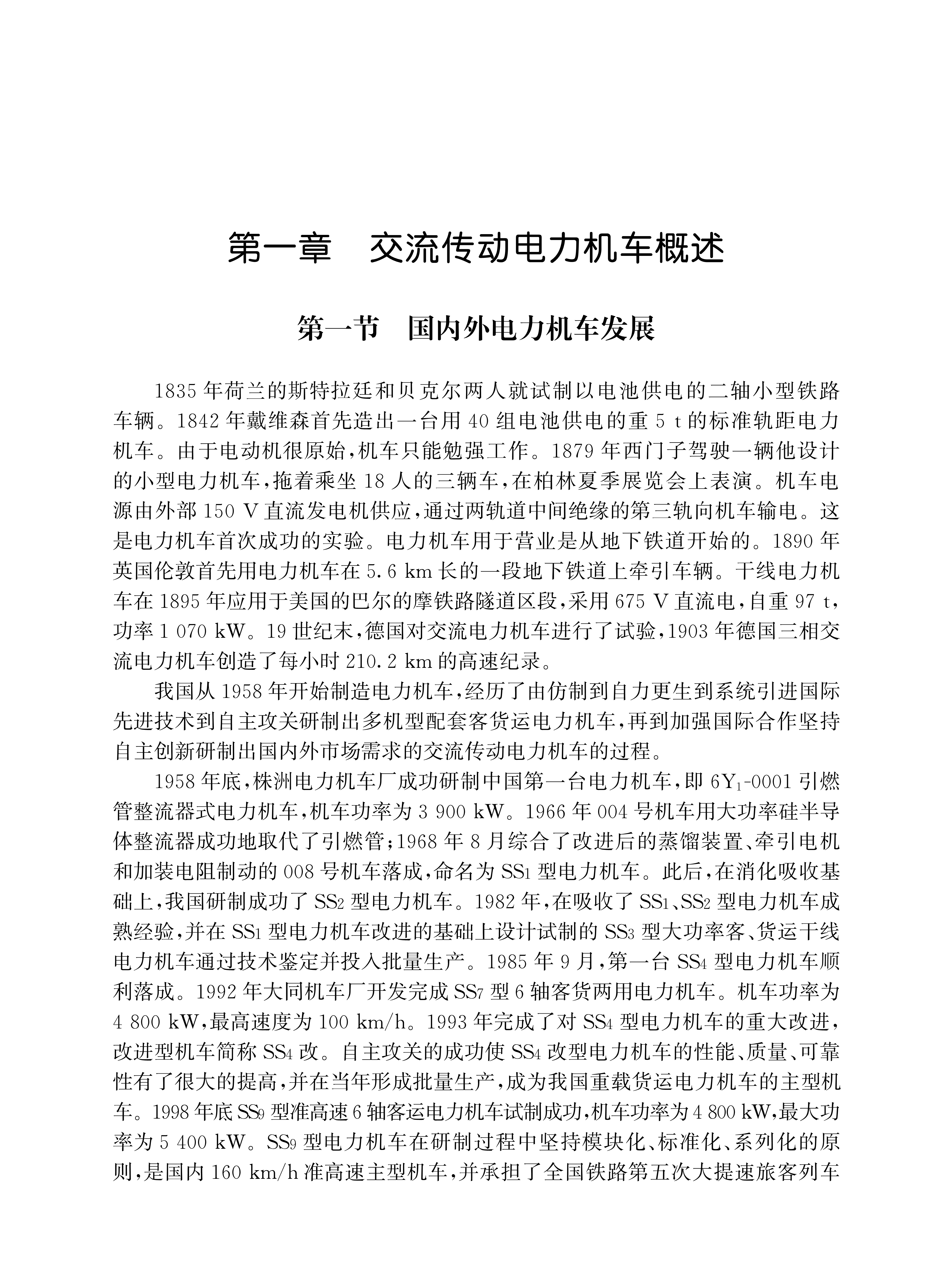 高低压试验及常见故障分析处理六章,主要介绍了国内外电力机车的发展、电力机车工作原理、交流传动电力机车总体共性基础知识、交直交传动电力机车车体结构、交直交传动电力机车设备布置、转向架、牵引缓冲装置、冷却、通风系统、走行部检查、牵引电机、主变压器、辅助电动机、电力机车主要电器结构及工作特性、牵引传动系统概述、牵引电路、牵引变流装置、辅助变流装置、辅助设备、辅助保护装置、微机网络控制系统概述、微机网络控制系统的组成、风源管路系统、CCBII型制动机主要部件及作用、电力机车低压试验等内容。