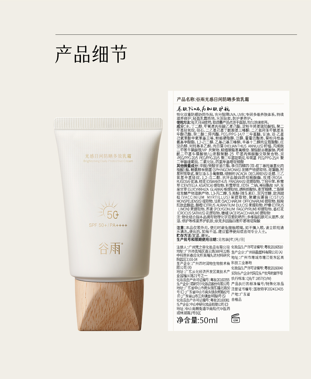 【双十二狂欢节】谷雨「云柔防晒」谷雨光感日间防晒多效乳霜50ml