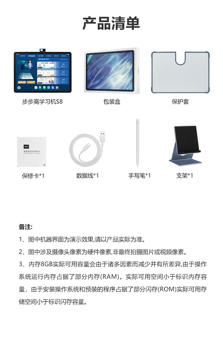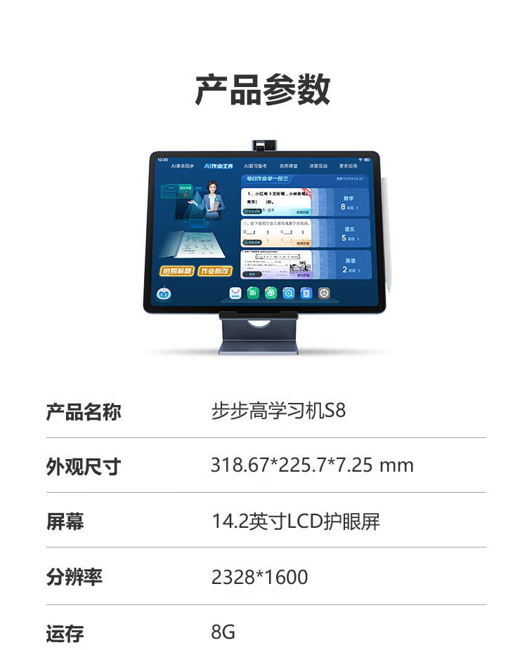 步步高S8 512G 14.2英寸AI学习机平板小学到高中课程同步 学生平板 家教机 早教机 BBJ