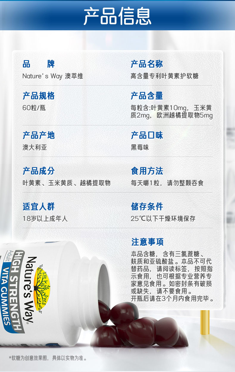 【跨境进口】Nature's Way澳萃维成人叶黄素佳思敏软糖蓝莓(效期26年5月)|报关后不支持退换货 介意慎拍