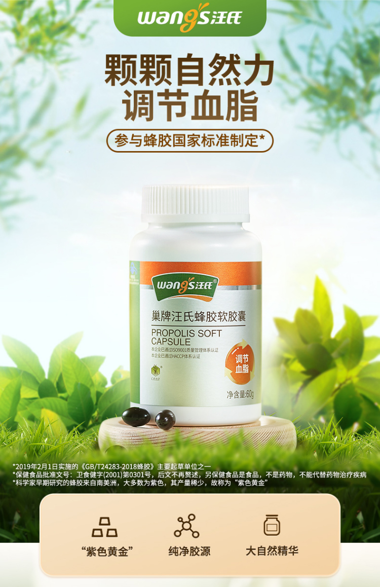 【调节血脂】紫银蜂胶巢牌汪氏蜂胶软胶囊500mg/粒*60粒30g(抖音新客礼遇)