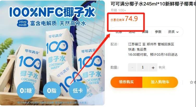 还有东方甄选直播间以及注重身材的卡路里老师都对这款椰子水赞不绝口,直播破千万销量!