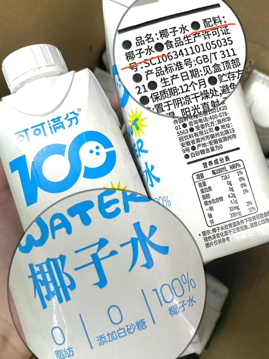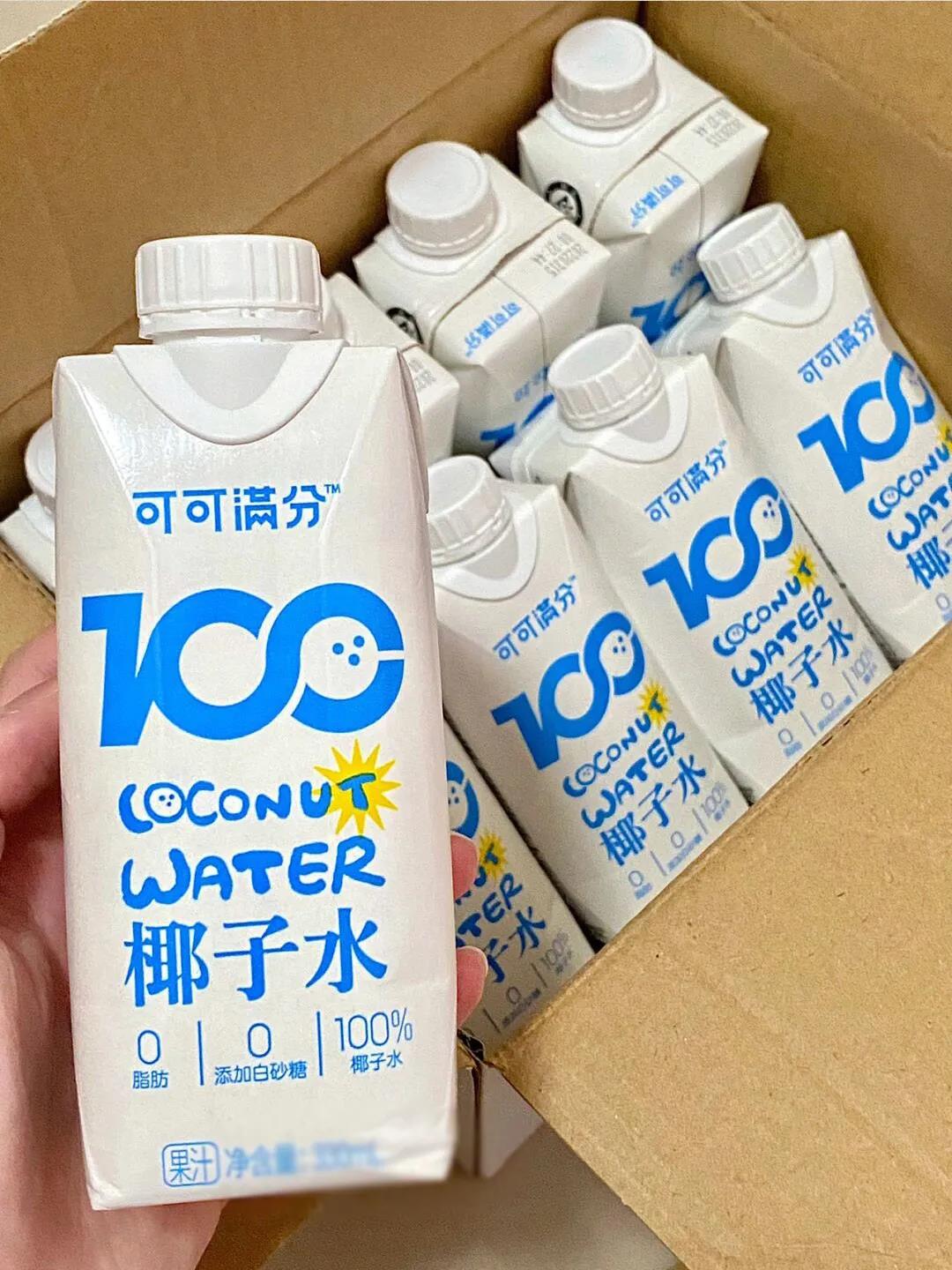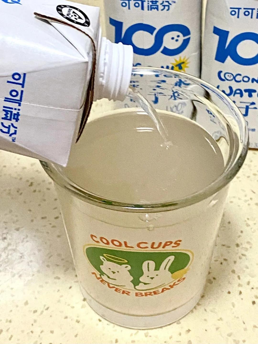 可可满分椰子水,100%纯椰子水,精简无添加,家里的老人孩子都能喝。