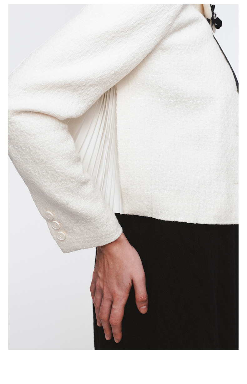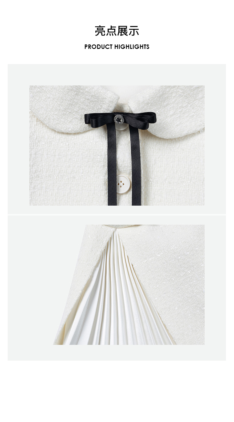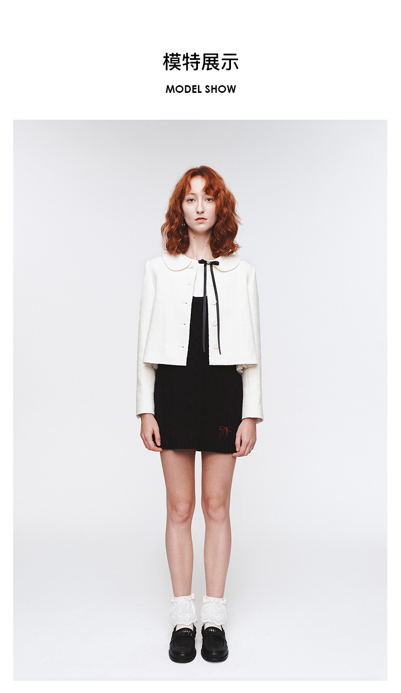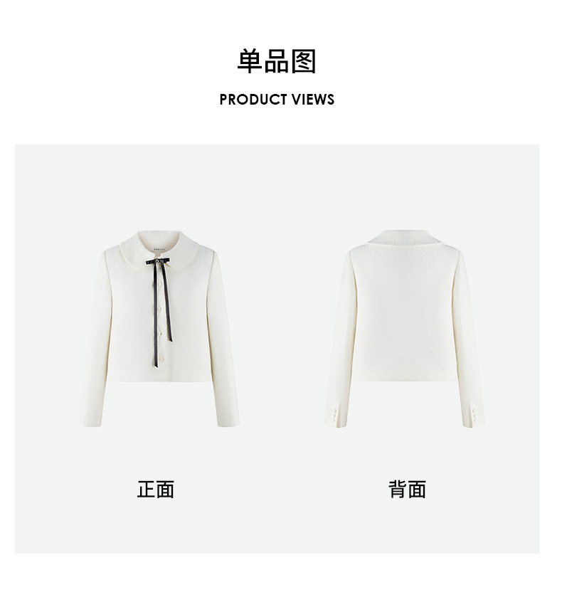 H2ESCOA079WH可拆卸蝴蝶结装饰娃娃领粗花呢外套