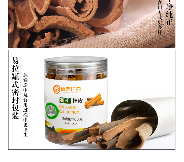 云南有机桂皮棒肉桂干货红酒精选去皮160g卤肉调料香料