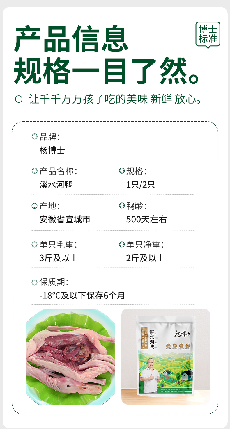 【发出后不支持拦截退货】杨博士 溪水河鸭 1000g(赠鲜鸡血300g*1)