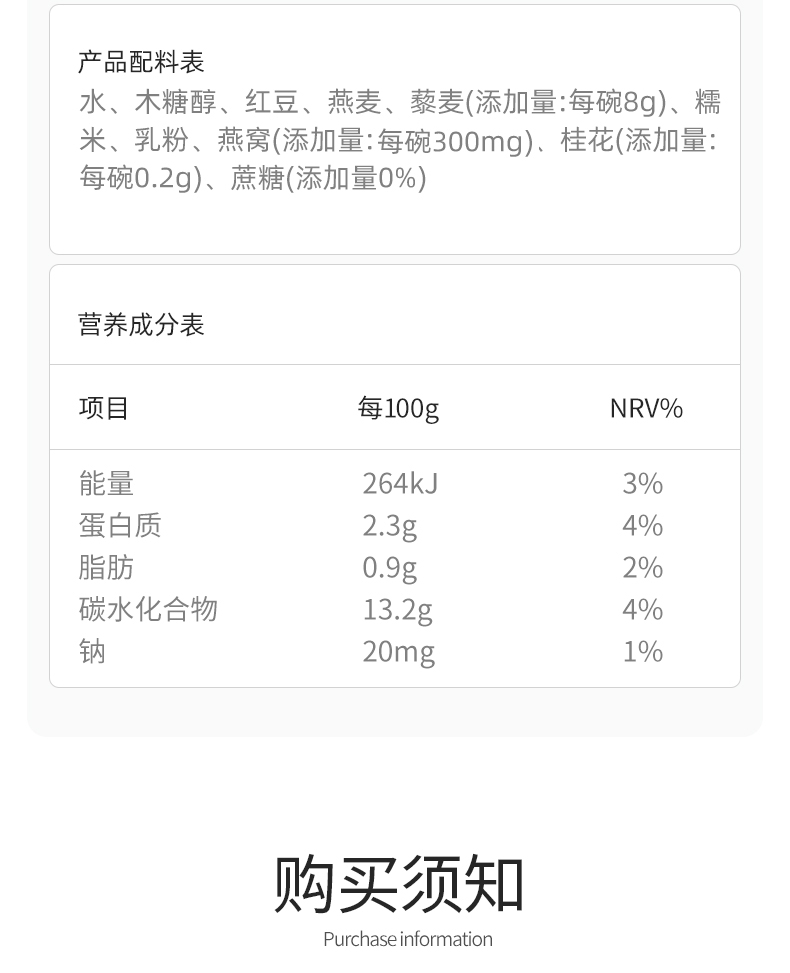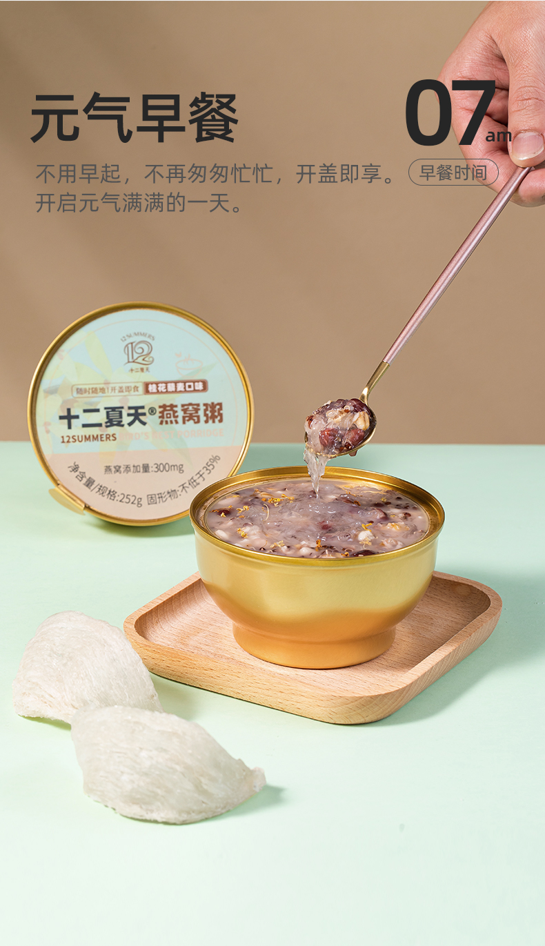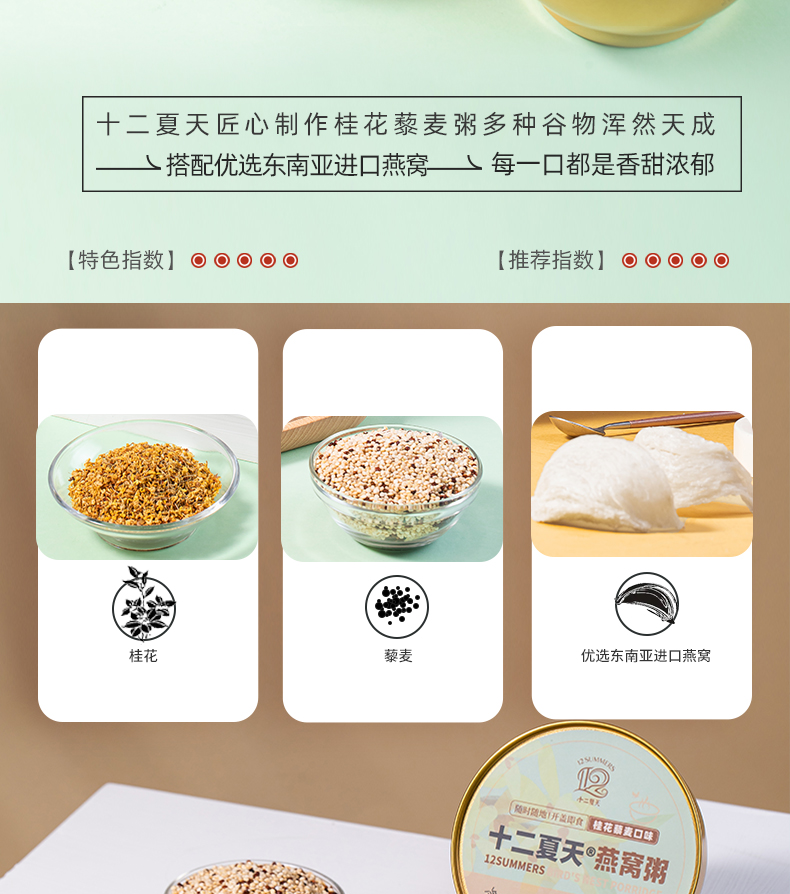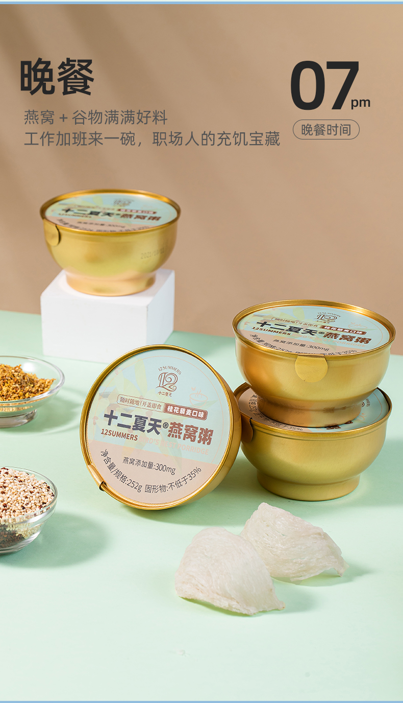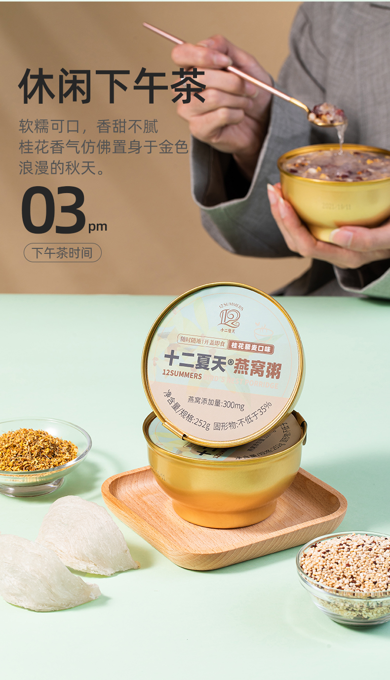 心选丨十二夏天燕窝粥桂花藜麦口味 252g*6碗