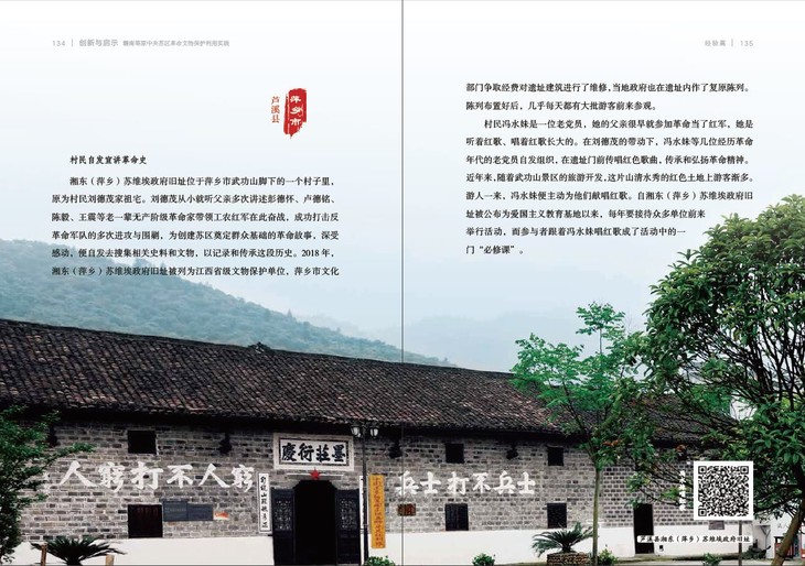 此外,书中还利用全媒体技术,设置了三处二维码。读者可通过扫描二维码,欣赏红歌演唱及江西采茶戏表演。内容包括:村民冯水妹在江西省萍乡市湘东(萍乡)苏维埃政府旧址前演唱充满当地风情、真挚朴实的红歌;萍乡市莲花县甘祖昌干部学院小剧场中,村民自编自演、讲述甘祖昌将军夫妇事迹的现代采茶戏《并蒂莲花》;上饶市横峰县葛源镇方志敏希望小学学生们的红歌合唱。