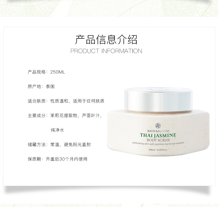 【去加拍下面0.1身体乳】BATHBLOOM茉莉磨砂膏 250ml A-3268