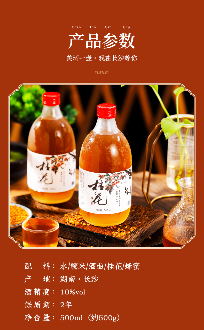 【产品规格】桃酿500ml*1瓶装&2瓶装,桂花酒500ml*1瓶装&2瓶装,青梅酒500ml*1瓶装&2瓶装(1瓶装酒液净重约1斤,2瓶装酒液净重约2斤;每箱都是独立的包装,如购买多件分多个包裹发出,可能会前后陆续到货)。