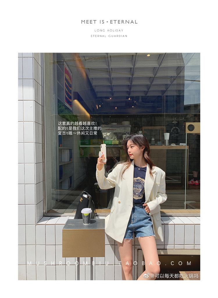 不退不换 今日特价 【金蘑菇菇 中古西装】vintage复古调调夏季薄款韩版网红休闲西服