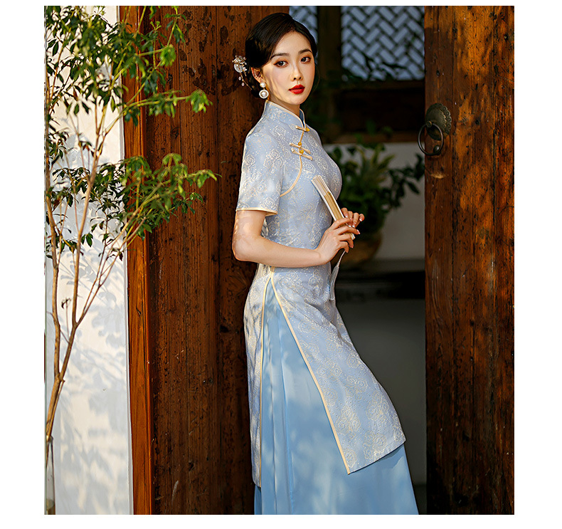 老上海复古改良新中式长款七分袖旗袍大摆裙2023冬新款旗袍GX-21804
