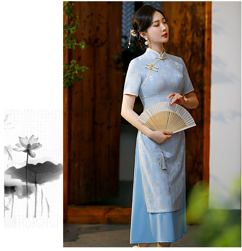 新款民国风,短袖改良春夏款长款复古旗袍GSJ-8500