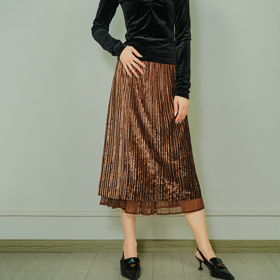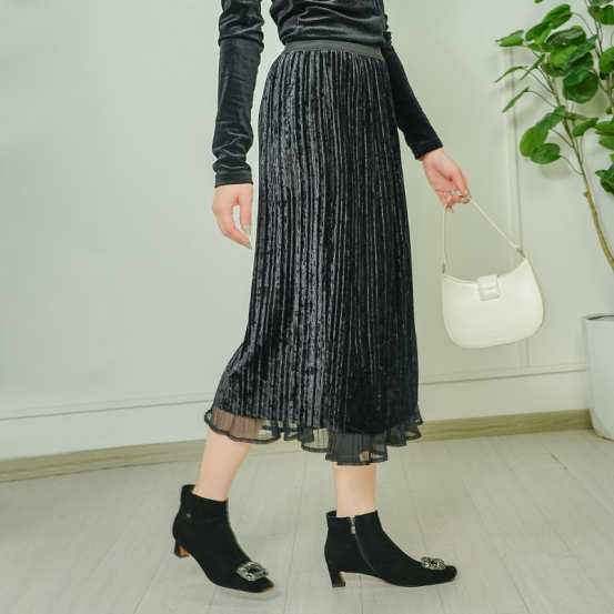 双面穿·丝绒网纱半裙 双层定制,是两面都可以穿的设计 第一层面料甄选高定丝绒 自然褶皱,修饰身形 面料细软,亲肤柔软 不仅面料穿上体感棒 上身视觉还呈现出光彩夺目感 适合那种高级贵妇风, 搭配精致都市风搭配也能让人眼前一亮 平常不仅可以内搭毛呢大衣 单配高领毛衣,彰显优雅的气质~