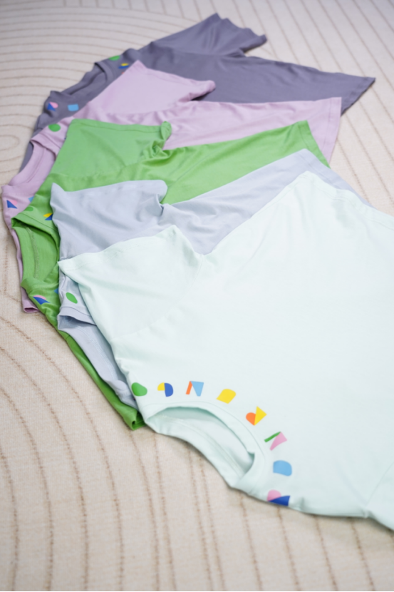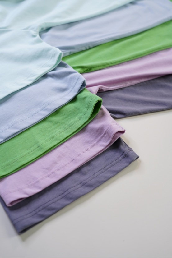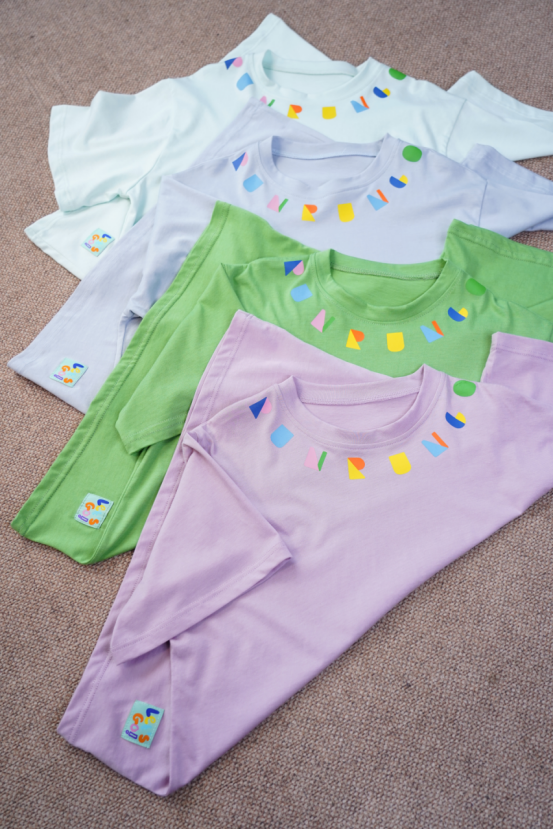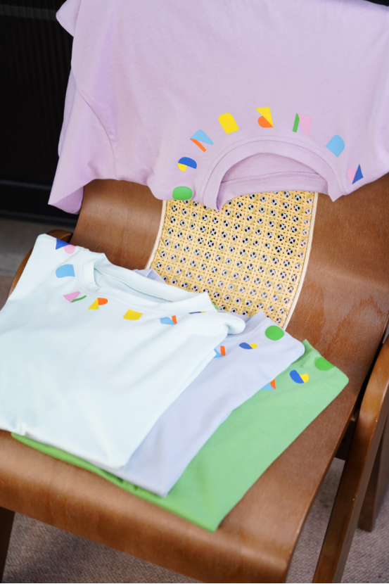 ⏏️版型这次也做了升级! 短袖采用韩版中袖,宽松版型 垂感舒适不拖沓。 在颜色上,选择了夏季浅色系 颜色较为中性,男女宝都能穿~